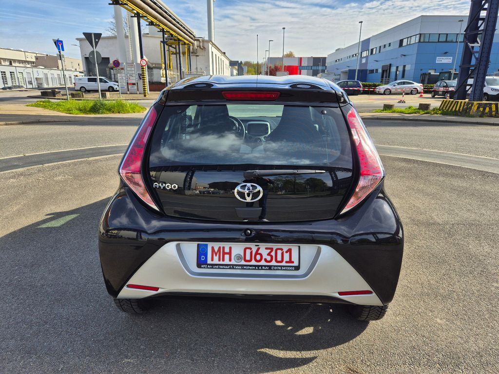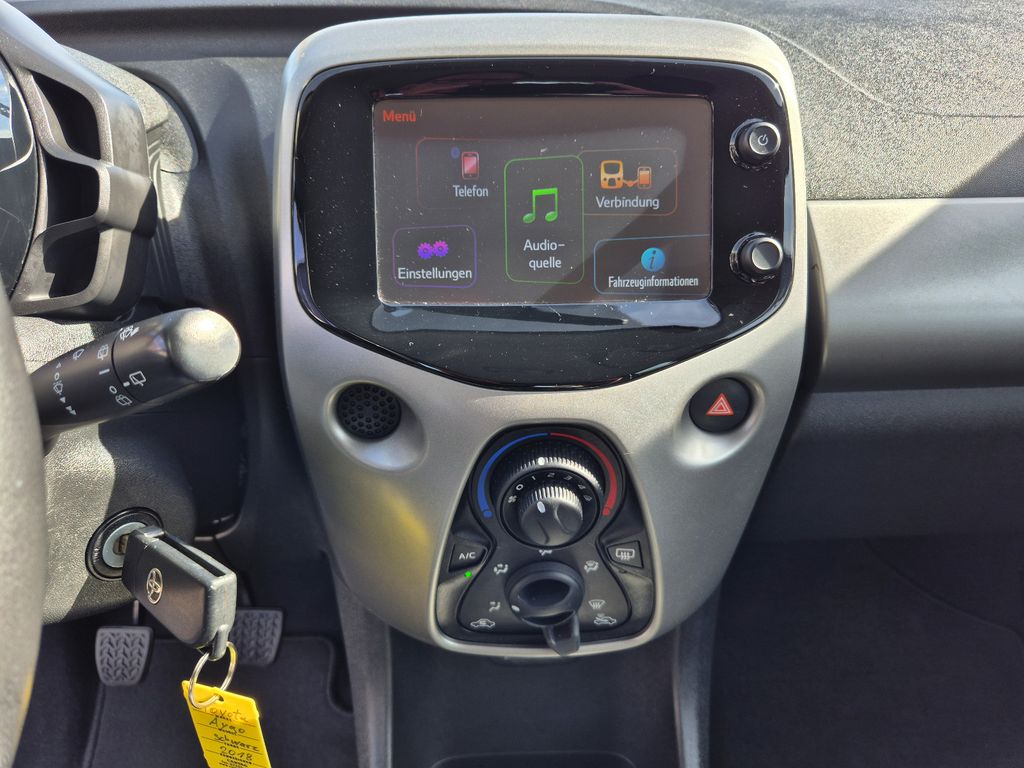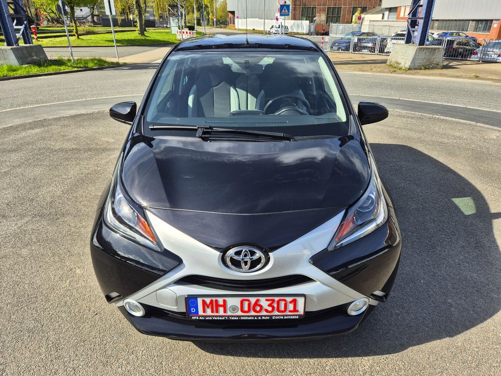 2-Farben-Lackierung, 3. Bremsleuchte, Airbag Beifahrerseite abschaltbar, Airbag Fahrer-/Beifahrerseite, Audiosystem: Multimedia Toyota x-touch mit Rückfahrkamera, Außenspiegel elektr. verstell- und heizbar, Außentemperaturanzeige, Bordcomputer, Bremsassistent, Drehzahlmesser, Elektr. Bremskraftverteilung, Fahrassistenz-System: Berganfahrkontrolle (HAC), Frontgrill X-Element, Pianolack, Frontgrill X-Verlängerung, Pianolack, Gepäckraumabdeckung / Rollo, Heckscheibe heizbar, Heckscheibenwischer, Heckschürze, Pianolack, Innenausstattung: Dekoreinlagen farbig, Innenausstattung: Piano Black, Isofix-Aufnahmen für Kindersitz, Karosserie: 5-türig, Kopf-Airbag-System, Lenksäule (Lenkrad) höhenverstellbar, LM-Felgen, Motor 1,0 Ltr. - 51 kW KAT, Reifen-Reparaturkit, Reifendruck-Kontrollsystem, Rücksitz geteilt, Rücksitz klappbar, Schadstoffarm nach Abgasnorm Euro 6, Schalt-/Wählhebelgriff Leder, Seitenairbag vorn, Sitz vorn links höhenverstellbar, Steckdose (12V-Anschluß) in Mittelkonsole, Stoßfänger Wagenfarbe, Türgriffe außen Wagenfarbe, Türgriffe innen verchromt, Warnanlage für Sicherheitsgurte hinten, Warnanlage für Sicherheitsgurte vorn, Wärmeschutzverglasung getönt, X-business-Paket