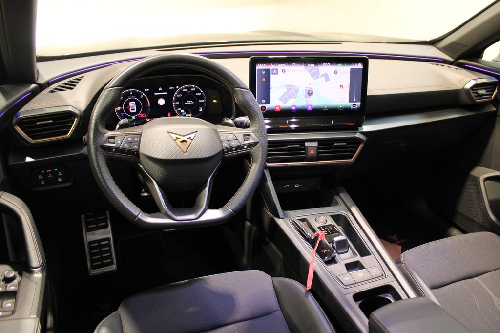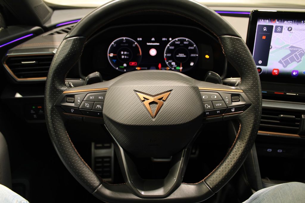 7 Lautsprecher, Airbag Beifahrerseite abschaltbar, Airbag Fahrer-/Beifahrerseite, Akustischer Fußgängerschutz, Außensound (e-sound / AVAS), Ambiente-Beleuchtung Smart Ambient Light, Antriebs-Schlupfregelung (ASR), Audio-Navigationssystem mit Touchscreen Farbbildschirm, Blinkleuchten LED in Außenspiegel integriert, Bluetooth-Schnittstelle mit Freisprecheinrichtung integriert, Dachhimmel schwarz, Dachreling schwarz, hochglänzend, Doppeltonhorn, Einstiegsleisten (Aluminium) vorn, beleuchtet, Elektron. Differentialsperre (XDS), Fahrassistenz-Paket L, Fahrassistenz-Paket: Travel Assist, Fahrassistenz-System: Adaptive Fahrwerksregelung (DCC), Fahrassistenz-System: Fahrprofilauswahl (CUPRA Drive Profile), Fahrassistenz-System: Parklenkassistent mit Einparkhilfe vorn und hinten, Fahrassistenz-System: Pre-Crash-System, Fensterheber elektrisch vorn + hinten mit Komfortschaltung, Fensterzierleisten schwarz hochglänzend, Gepäckraumabdeckung / Rollo, Heckleuchten Voll-LED mit dynamischem Lichtband (Infinite Light), Hybrid 180 kW (Motor 1,4 Ltr. - 110 kW TSI), Induktionsladeschale für Smartphone, Isofix-Aufnahmen für Kindersitz an Rücksitz, Karosserie: 5-türig, Klimaanlage Climatronic 3-Zonen, Kombiinstrument digital (virtual cockpit), Kopf-Airbag-System, Ladekabel mit Schukostecker, Licht- und Sicht-Paket, LM-Felgen, Mittelarmlehne hinten, Mittelkonsole vorn mit Mittelarmlehne, Becherhalter, Ablagebox und Luftausströmer hinten, Notrufsystem, Otto-Partikelfilter (OPF), Parkbremse elektrisch, Radioempfang digital (DAB+), Radstand 2680 mm, Reifen-Reparaturset, Rückfahrkamera, Rücksitzlehne geteilt/klappbar (1/3-2/3), Rücksitzlehnen umklappbar mit Fernentriegelung im Kofferraum, Schadstoffarm nach Abgasnorm Euro 6d, Seitenairbag, Seitenairbag vorn mitte (Central Airbag), Seitenscheiben hinten und Heckscheibe abgedunkelt, Sitz vorn links höhenverstellbar, Sitz vorn rechts höhenverstellbar, Sitzbezug / Polsterung: Stoff, Sonnenblende links mit Spiegel (beleuchtet), Sonnenblende rechts mit Spiegel (beleuchtet), Sport-Schalensitze vorn mit integrierten Kopfstützen, Start/Stop-Anlage, Steckdose (12V-Anschluß) vorn, Steckdose 230V im Gepäckraum, USB-Ladeanschlüsse (2-fach, Typ C) für 2.Sitzreihe, USB-Schnittstelle vorn (2-fach, Typ C), Verzurrösen Koffer-/Laderaum, Warnanlage für Sicherheitsgurt-System, Wärmeschutzverglasung