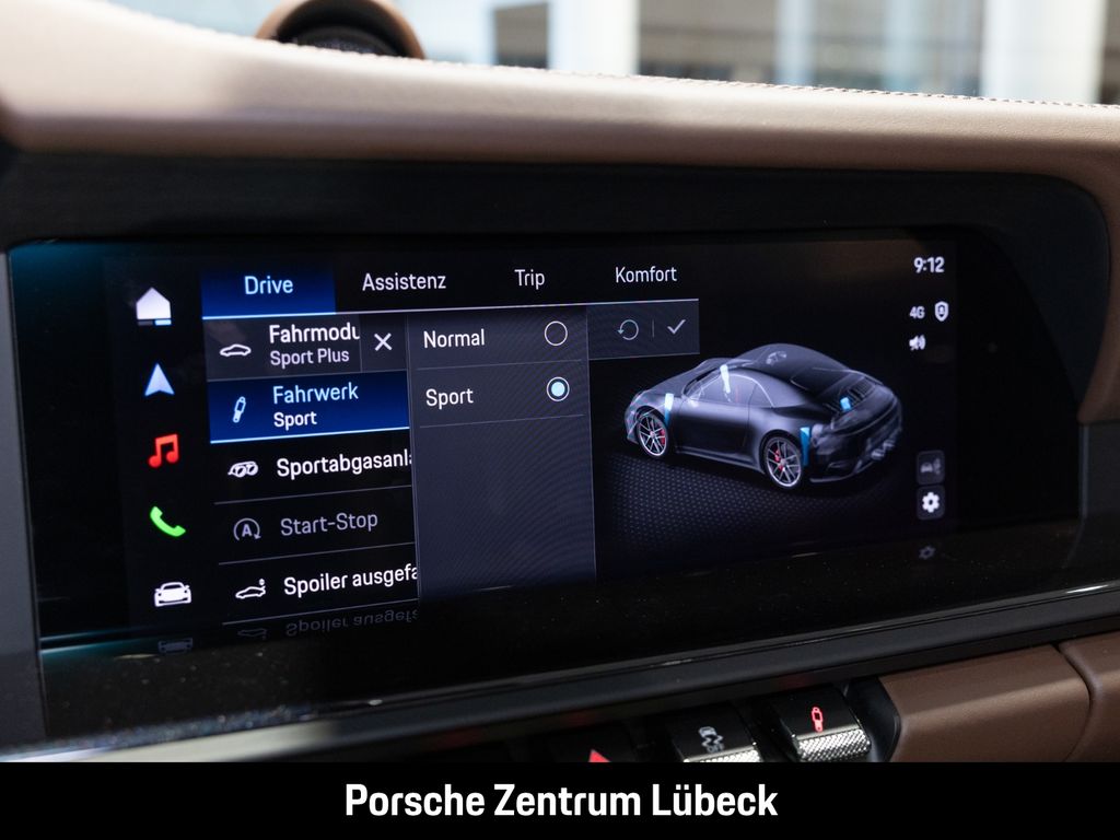- Weiteres: Herzlich Willkommen in Ihrem Porsche Zentrum Lübeck. . . Vielen Dank für Ihr Interesse! . . Das hiermit angebotene Fahrzeug wird im Kundenauftrag verkauft und mit einer 12 monatigen Porsche Approved Garantie inkl. Assistance versehen, die bereits im Kaufpreis enthalten ist. . . Als exklusiver Porsche Financial Services Partner unterbreiten wir Ihnen gerne ein performantes Finanzierungs- und Leasingangebot. . . Gemeinsam mit Ihnen erstellen wir gerne eine Offerte für die Inzahlungnahme Ihres aktuellen Fahrzeugs, um Ihren Traum eines neuen Porsche zu verwirklichen. . . Kontaktieren Sie uns unter +49 451 87399-0 oder info( at )porsche-luebeck.de, um mehr zu erfahren oder einen Termin für eine individuelle Beratung zu vereinbaren. . . Irrtümer, Änderungen, sowie Zwischenverkauf vorbehalten. . . Die genannten Preise verstehen sich zuzüglich der anfallenden Zulassungsgebühren., (6FU) Spiegelfüße lackiert in Exterieurfarbe, (AAK) „911“ Schriftzug lackiert in Exterieurfarbe, (VR4) SportDesign Schwellerverkleidungen, (1N3) Servolenkung Plus, (1BH) Porsche Active Suspension Management (PASM), (2UH) Liftsystem Vorderachse, (1LR) Bremssättel lackiert in Schwarz (hochglanz), (0I2) 84 Liter Kraftstofftank, (1NX) Räder lackiert in Schwarz (seidenglanz), (2PJ) GT-Sportlenkrad in Leder inkl. Lenkradheizung, (3J7) Porsche Wappen auf Kopfstützen, (Q1J) Adaptive Sportsitze Plus (18-Wege, elektrisch) mit Memory-Paket, (2TG) Sportsitz Plus Rückenlehne Leder mit Dekorelement Leder, (4D3) Sitzbelüftung vorn, (2C8) Verkleidung Lenksäule Leder (in Verbindung mit Memory-Paket), (3HB) Lederpaket 930, (7TL) Interieur-Paket lackiert in Exterieurfarbe mit Akzent in Schwarz, (VT9) Türeinstiegsblenden Aluminium gebürstet in Schwarz, beleuchtet, (UM0) Interieur-Zusatzpaket Fond Leder, (5XH) Sonnenblenden Leder, (AVX) Konsole Innenspiegel Leder mit farbigen Ziernähten - trüffelbraun, (ALB) Cupholderblende Leder, (QE3) Ablagenetz Beifahrerfußraum, (9VL) BOSE® Surround Sound-System, (8JU) HD-Matrix LED-Hauptscheinwerfer abgedunkelt, (UD1) LED-Türprojektoren „PORSCHE“ Schriftzug, (2V4) Ionisator, (FT3) Surround View inkl. Aktive Einparkunterstützung, (VC2) Garagentoröffner nach HomeLink® Standard, (7Y8) Spurwechselassistent, (3V1) Porsche InnoDrive inkl. Abstandsregeltempostat