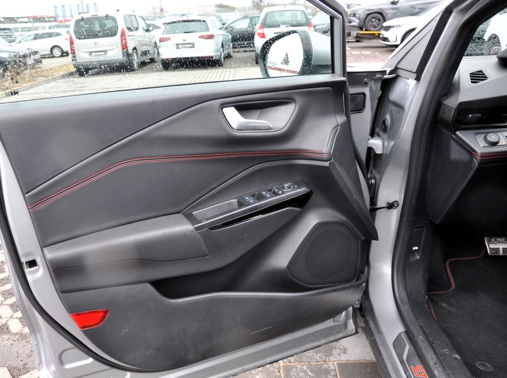 Ambiente-Beleuchtung vorn (LED), Antischlupfregelung (ASR), Audio-Navigationssystem Ford Cloud-Navigationssystem, Audiobedienung am Lenkrad, Außenspiegel elektr. anklappbar, Außenspiegel elektr. verstell- und heizbar, Body-Styling-Paket, Dachhimmel Stoff, dunkel, Eco-Anzeige für verbrauchsoptimiertes Fahren (EcoCoach), Einparkhilfe hinten, Fahrassistenz-System: Berganfahr-Assistent (Hill-Holder), Fahrassistenz-System: Falschfahrer-Warnfunktion, Fahrassistenz-System: Fernlichtassistent (Scheinwerfer mit Abblendautomatik), Fahrassistenz-System: Notbrems-Assistent, Fahrassistenz-System: Post-Collision-System, Fahrassistenz-System: Pre-Collision-System (Kamera-basiert), Fahrassistenz-System: Spurhalteassistent mit Müdigkeitserkennungs-Sensor, Fahrassistenz-System: Verkehrsschildassistent, Farbdisplay für Bordcomputer, Fensterheber elektrisch vorn + hinten mit Komfortschließung, Fußmatten Teppich, Getriebe 7-Gang - Doppelkupplungsgetriebe, Heckleuchten LED, Innenraumfilter: Staub- und Pollenfilter, Innenspiegel mit Abblendautomatik, Intelligent Protection System (IPS), Intelligenter Geschwindigkeits-Begrenzer, Isofix-Aufnahmen für Kindersitz, Karosserie: 5-türig, Klimaautomatik, Kombiinstrument Digitalanzeige 12,3 Zoll, Kopfstützen hinten mechan. verstellbar (3 Stück), Laderaumboden variabel (Ford Megabox), Lendenwirbelstütze Sitz vorn links, Lenkrad (Sport/Leder, ST), Lenksäule (Lenkrad) höhen-/längsverstellbar, LM-Felgen, Mild-Hybrid 92 kW (Motor 1,0 Ltr. - 92 kW EcoBoost), Modellpflege, My Key (2. Fahrzeugschlüssel programmierbar), Nebelscheinwerfer LED, Otto-Partikelfilter (OPF), Pedale Aluminium, Radioempfang digital (DAB), Radstand 2588 mm, Reifen-Reparaturkit, Reifendruck-Kontrollsystem, Rücksitzlehne geteilt/klappbar (60:40), Schadstoffarm nach Abgasnorm Euro 6d-TEMP, Schadstoffarm nach Abgasnorm Euro 6e, Scheinwerfer LED, Scheinwerfer-Assistent mit Tag-/Nachtsensor, Sitz vorn links höhenverstellbar, Sonnenblende links mit Spiegel (beleuchtet), Sonnenblende rechts mit Spiegel (beleuchtet), Sport-Fahrwerk, Sportsitze vorn, Standard Variante, Start/Stop-Anlage, Türgriffe außen Wagenfarbe