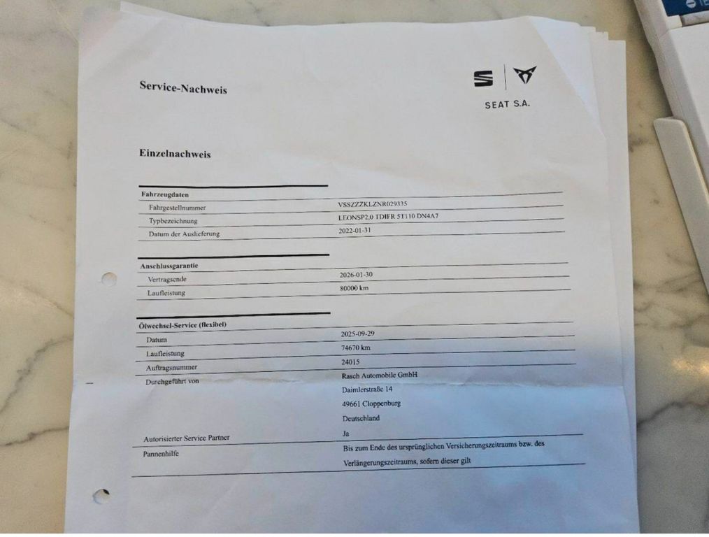 - Hersteller-Anschlussgarantie 3 Jahre, max. 100.000 km