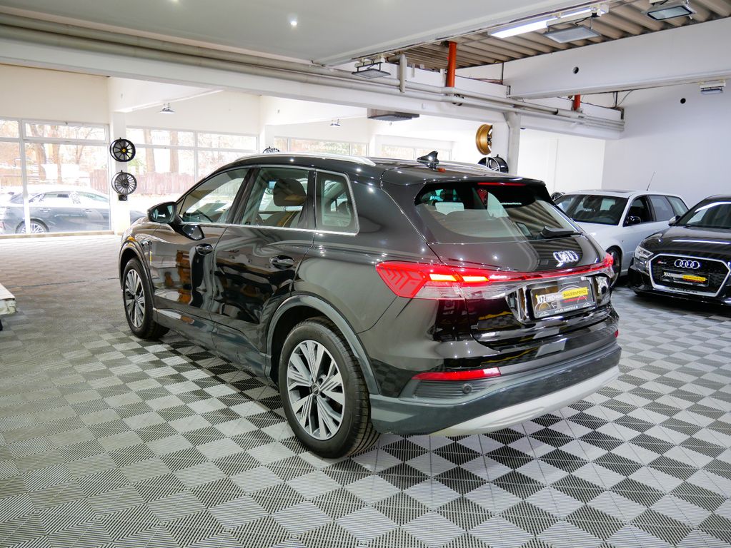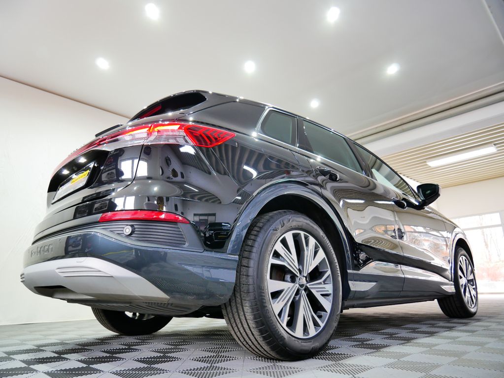 Dieser gepflegte Audi Q4 aus dem Jahr 2021 überzeugt durch seine umfangreiche Ausstattung und zukunftsorientierte Elektromobilität. Mit einer Batteriekapazität von 82 kWh und einem Gesundheitszustand von 93,3% bietet er zuverlässige Reichweite für den Alltag. Der Heckantrieb mit 204 PS sorgt für dynamisches Fahrverhalten, während die 8-jährige Batteriegarantie (bis 160.000 km) zusätzliche Sicherheit gibt. Die schwarze Metallic-Lackierung harmoniert perfekt mit dem schwarzen Stoffinterieur.Die 3-Zonen-Klimaautomatik, beheizbare Sitze und das Navigationssystem bieten hohen Komfort auf jeder Fahrt. Modernste Assistenzsysteme wie adaptiver Tempomat, Spurhalteassistent, Kollisionsvermeidung und Müdigkeitserkennung unterstützen den Fahrer optimal. Die LED-Scheinwerfer mit adaptivem Kurvenlicht sorgen für beste Sicht bei allen Bedingungen.