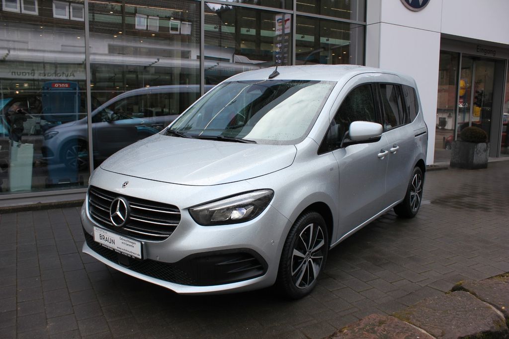 Abdeckung Schiebetürschiene Wagenfarbe, Airbag Beifahrerseite abschaltbar, Airbag Fahrer-/Beifahrerseite, Ambiente-Beleuchtung, Antriebs-Schlupfregelung (ASR), Außenspiegel elektr. verstell- und heizbar, beide, Außenspiegel Wagenfarbe, DAB-Tuner (Radioempfang digital), Design- und Ausstattungslinie Progressive, Einstiegsleisten mit Schriftzug Mercedes-Benz, Fahrassistenz-System: aktiver Bremsassistent, Fahrassistenz-System: aktiver Spurhalteassistent, Fahrassistenz-System: Attention-Assist (Müdigkeitserkennungs-Sensor), Fahrassistenz-System: Berganfahrhilfe, Fahrassistenz-System: Geschwindigkeitslimit-Assistent, Fenster für hintere Türen / Heckklappe mit Wisch-/Waschanlage, Fensterheber elektrisch Schiebetüren, Feststellbremse elektrisch, Gepäcknetz / Tasche an Vordersitzlehne, Gepäckraumabdeckung / Rollo, Handschuhfach abschließbar, Heckklappe mit Verglasung, Heckklappenleiste verchromt, Heckscheibe heizbar, Infotainment-System: Mercedes me connect, Innenausstattung: Zierteile seidenmatt silber, Innenraumbeleuchtung LED, Innenraumspiegel, Innenverkleidungen Gehobene Ausführung, Isofix-Aufnahmen für Kindersitz an Rücksitz, Karosserie: 5-türig, Keyless Go Startanlage, Klapptisch in Fahrer- und Beifahrersitzlehne integriert, Kombiinstrument mit Farbdisplay, Kommunikationsmodul (LTE) Vorbereitung Mercedes me connect, Kopfstützen hinten (3-fach), Kraftstoff-Filter mit Wasserabscheider, Kühlergrill verchromt, Lendenwirbelstützen Sitz vorn links, Lenkrad mit Multifunktion, Lenksäule (Lenkrad) mechan. verstellbar, Mercedes-Benz Notrufsystem, Mittenairbag vorn, Motor 1,5 Ltr. - 85 kW CDI KAT, Radstand 2716 mm, Reifendruck-Kontrollsystem, Rückfahrkamera, Rücksitzlehne geteilt / klappbar, Schadstoffarm nach Abgasnorm Euro 6d, Schalt-/Wählhebelgriff Leder, Scheibenwaschbehälter große Ausführung, Schiebetür Lade-/Fahrgastraum links, Schiebetür Lade-/Fahrgastraum rechts, Schiebetür links mit Fenster, Schiebetür rechts mit Fenster, Seitenairbag (Sidebag) und Windowbag vorn, Seitenscheiben hinten feststehend, Seitenscheiben hinten und Heckscheibe abgedunkelt, Sitz vorn links höhenverstellbar, Sitz vorn rechts höhenverstellbar, Sitzbezug / Polsterung: Ledernachbildung Artico / Dinamica, Smartphone Integrations-Paket, Sonnenblende links mit Spiegel, Sonnenblende rechts mit Spiegel, Start/Stop-Anlage, Steckdose (12V-Anschluß), Stoßfänger Wagenfarbe, Teppichboden in Fahrgast-/Laderaum, Türgriffe außen Wagenfarbe, Vorrüstung Remote Service Plus, Vorrüstung Verkehrs-Informations-System Live Traffic, Warmluftkanal zum Fahrgastraum, Warnanlage / Statusanzeige für Sicherheitsgurte im Fond, Wärmeschutzverglasung, Zuheizer, Sitzheizung vorn, Ambiente-Beleuchtung, Seitenscheiben hinten und Heckscheibe abgedunkelt