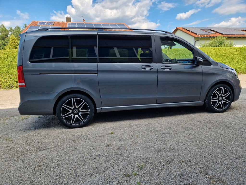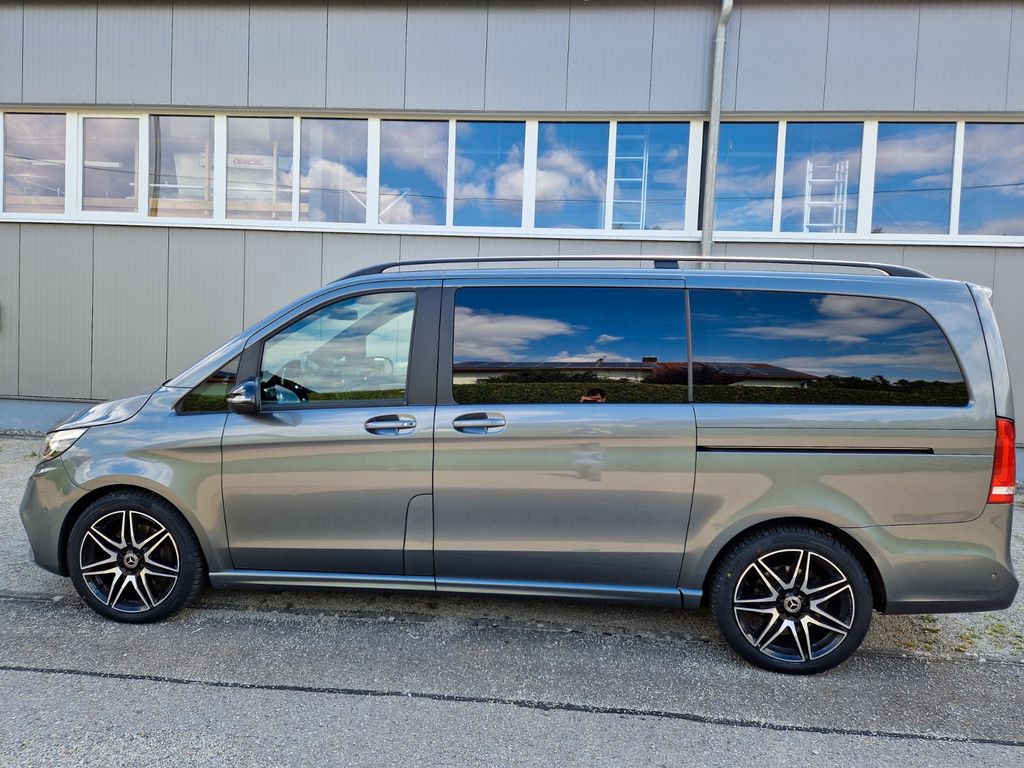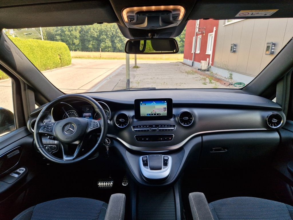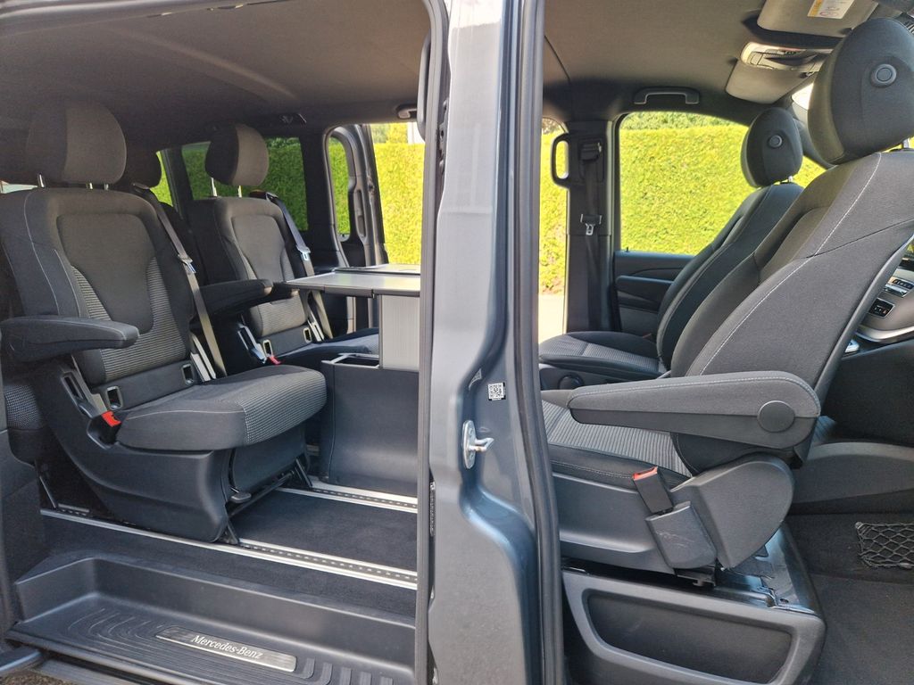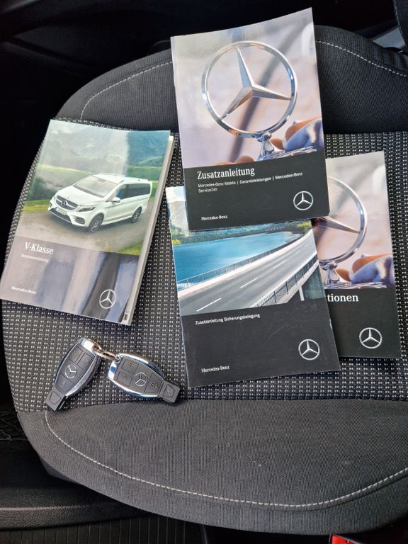 Sonderausstattung:Ablagenetz an Vordersitzlehne links, AMG-Line, Außenspiegel mit Totwinkel-Assistent, Dachreling, Fahrassistenz-System: aktiver Bremsassistent, Fahrassistenz-System: Fernlichtassistent Plus, Fahrassistenz-System: Spurhalteassistent, Fahrassistenz-System: Verkehrs-Informations-System Live Traffic, Fußmatten Velours, Gepäcksicherungsnetz, Heckklappe mit automatischem Öffnungs- und Schließsystem, Heckscheibe aufstellbar, Hold-Funktion, Innenausstattung: Zierteile Carbon-Optik, Innenraumlicht-Paket, Intelligent Light System LED, Klimaautomatik Fond (Tempmatik), Komfort-Klimaautomatik Thermotronik, Kraftstofftank: vergrößert, Laderaumunterteilung, LM-Felgen 8x19 (AMG, 7-Doppelspeichen), Metallic-Lackierung, Mittelkonsole vorn mit Rollo / Ablage, Navigationssystem für Multimediasystem MBUX, Night-Paket, Park-Paket mit 360° Kamera, Schiebetür Lade-/Fahrgastraum links, Sitze im Fahrerhaus: Beifahrersitz Komfort, drehbar, 2 Armlehnen, Sitze im Fahrerhaus: Fahrersitz heizbar, Sitze im Fahrerhaus: Fahrersitz Komfort, drehbar, 2 Armlehnen, Sitze im Lade-/FG-Raum: 2.Reihe, 3er-Sitzbank Komfort, Spiegel-Paket, Sport-Fahrwerk, Steckdosen (12V-Anschluß) im Lade-/Fahrgastraum, 2-fach, Tisch-Paket, Zusatzheizung (Warmwasser)