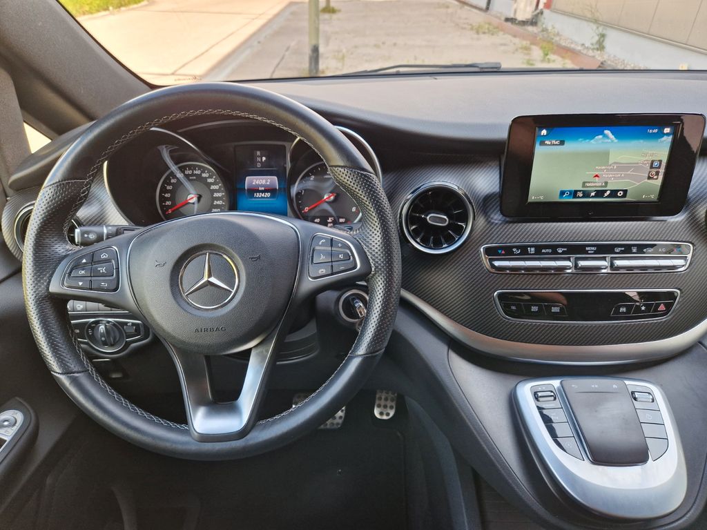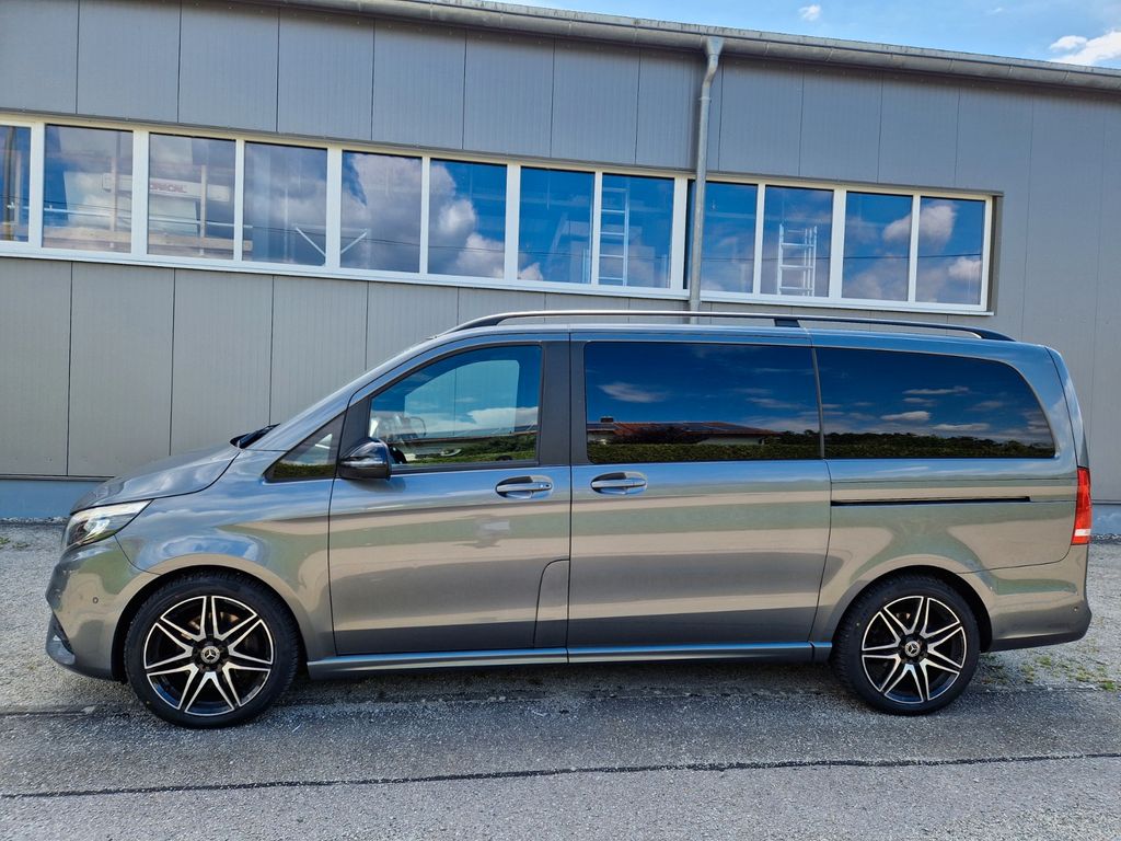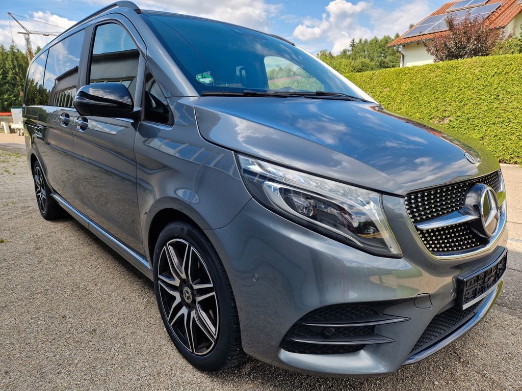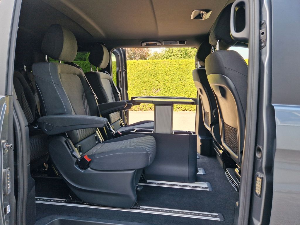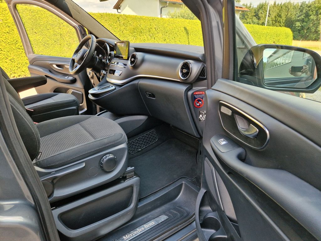 Sonderausstattung:Ablagenetz an Vordersitzlehne links, AMG-Line, Außenspiegel mit Totwinkel-Assistent, Dachreling, Fahrassistenz-System: aktiver Bremsassistent, Fahrassistenz-System: Fernlichtassistent Plus, Fahrassistenz-System: Spurhalteassistent, Fahrassistenz-System: Verkehrs-Informations-System Live Traffic, Fußmatten Velours, Gepäcksicherungsnetz, Heckklappe mit automatischem Öffnungs- und Schließsystem, Heckscheibe aufstellbar, Hold-Funktion, Innenausstattung: Zierteile Carbon-Optik, Innenraumlicht-Paket, Intelligent Light System LED, Klimaautomatik Fond (Tempmatik), Komfort-Klimaautomatik Thermotronik, Kraftstofftank: vergrößert, Laderaumunterteilung, LM-Felgen 8x19 (AMG, 7-Doppelspeichen), Metallic-Lackierung, Mittelkonsole vorn mit Rollo / Ablage, Navigationssystem für Multimediasystem MBUX, Night-Paket, Park-Paket mit 360° Kamera, Schiebetür Lade-/Fahrgastraum links, Sitze im Fahrerhaus: Beifahrersitz Komfort, drehbar, 2 Armlehnen, Sitze im Fahrerhaus: Fahrersitz heizbar, Sitze im Fahrerhaus: Fahrersitz Komfort, drehbar, 2 Armlehnen, Sitze im Lade-/FG-Raum: 2.Reihe, 3er-Sitzbank Komfort, Spiegel-Paket, Sport-Fahrwerk, Steckdosen (12V-Anschluß) im Lade-/Fahrgastraum, 2-fach, Tisch-Paket, Zusatzheizung (Warmwasser)