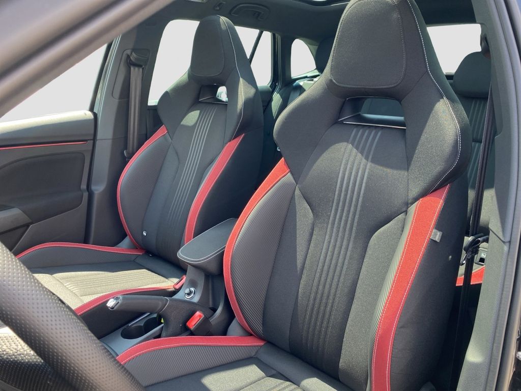 Sitzbezüge in Stoff, Ambiente-Beleuchtung LED in Rot, Sitzheizung vorn, Innenspiegel mit Abblendautomatik, Kombiinstrument digital (virtual cockpit), Lenkrad (Sport/Leder - 3-Speichen - unten abgeflacht) mit Multifunktion, Lenkrad heizbar, Lendenwirbelstütze Sitz vorn rechts, Mittelarmlehne vorn, Gepäckraum-Abtrennung (Netz), Sportsitze, Rücksitzlehne geteilt/klappbar (1/3-2/3), Isofix-Aufnahmen für Kindersitz an Rücksitz, Isofix-Aufnahmen für Kindersitz an Beifahrersitz, Sonnenblende rechts mit Spiegel