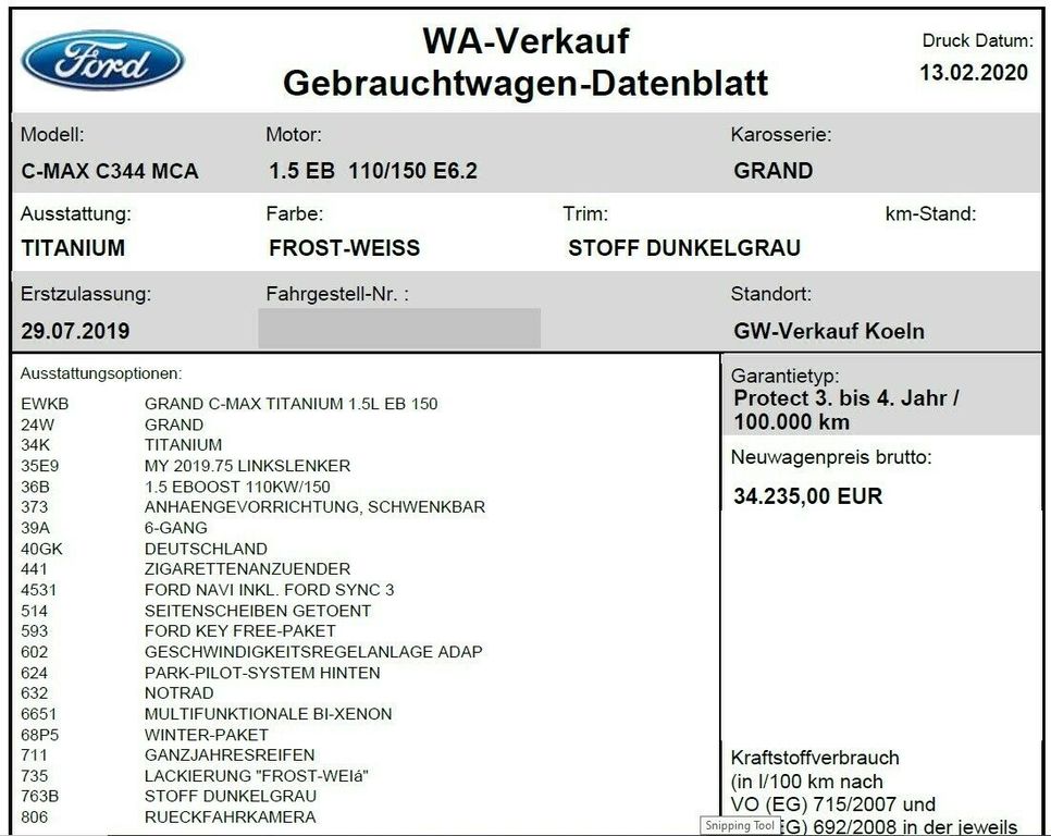 Neuwagenpreis: ~35.000€ (44% Nachlass), Produktionsdatum 29.5.2019Jahreswagen von Ford Mitarbeiter - hauptsächlich Langstrecke zwecks Dienstreisen. Fahrzeug wird aufgrund von Neuanschaffung abgegeben!