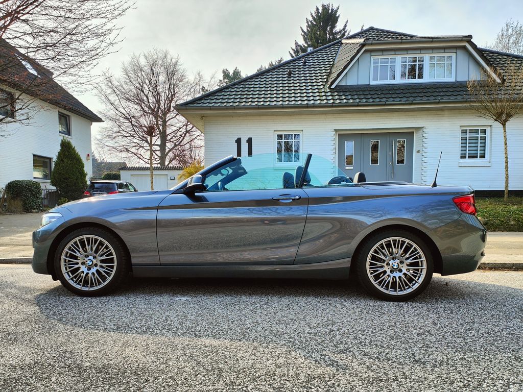 Zum Verkauf steht unser sehr gepflegtes BMW 220D Automatik Cabrio inder tollen Farb-Kombination Mineralgrau-Metallic mit schwarzem Leder