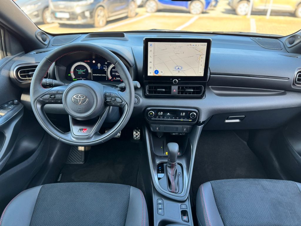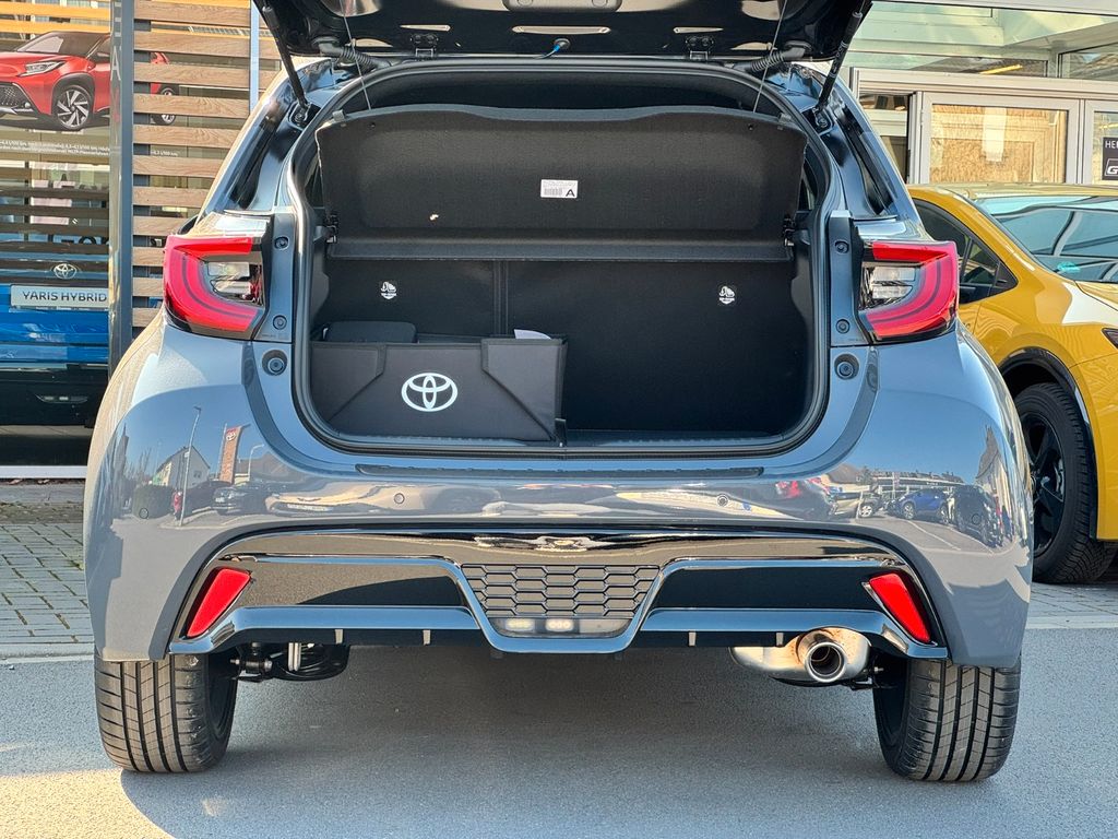 2-Farben-Lackierung Metallic, 3. Bremsleuchte, Airbag Beifahrerseite abschaltbar, Airbag Fahrer-/Beifahrerseite, Aktive Kopfstützen vorn, Ambiente-Beleuchtung vorn (LED), Anzeigeinstrumente digital, Audiobedienung am Lenkrad, Autom. Begleitfunktion der Beleuchtung (Follow me home, FMH), Außenspiegel elektr. anklappbar, Außenspiegel elektr. verstell- und heizbar, Blinkleuchte in Außenspiegel integriert, Blinkleuchten LED, Dachantenne, Digitaler Fahrzeugschlüssel im Smartphone (Smart Key), Elektr. Bremskraftverteilung, Fahrassistenz-System: Berganfahrkontrolle (HAC), Fahrassistenz-System: Eco-Anzeige für verbrauchsoptimiertes Fahren, Fahrassistenz-System: Müdigkeitserkennungs-Sensor, Fahrassistenz-System: Nothalt-Assistent, Fahrassistenz-System: Notlenk-Assistent, Fahrassistenz-System: Sicherheitssystem Toyota Connect mit automatischem Notruf (eCall), Fahrassistenz-System: Totwinkel-Assistent (BLIS), Fensterheber elektrisch vorn + hinten, Freisprechanlage Bluetooth, Freisprechanlage mit Audiostummschaltung und Sprachsteuerung, Gepäckraumabdeckung / Rollo, Heckleuchten LED, Heckspoiler schwarz, Innenraumfilter: Staub- und Pollenfilter mit Aktivkohlefilter, Innenspiegel mit Abblendautomatik, Isofix-Kindersitz-System, Karosserie: 5-türig, Klimaautomatik 2-Zonen, Kopfstützen vorn und hinten verstellbar, Kühlergrill unten / oben Pianolack, Lenkrad (Sport/Leder), Lenksäule (Lenkrad) verstellbar, Leseleuchte, Motor 1,5 Ltr. - 68 kW (System: 96 kW) Hybrid, Multimedia Display (10,5 Zoll), Nebelscheinwerfer LED, Parkbremse elektrisch (EPB), Protection-Paket, Reifen-Reparaturkit, Reifendruck-Kontrollsystem, Rückfahrkamera, Rücksitz geteilt, Rücksitz klappbar, Schadstoffarm nach Abgasnorm Euro 6e, Schalt-/Wählhebelgriff Leder, Scheibenwischer mit Intervallschaltung, Seitenairbag hinten, Seitenairbag vorn, Service-System: MyT-Connected Services, Sitz vorn links höhenverstellbar, Sitzbezug / Polsterung: Alcantara, Sitzheizung vorn, Smartphone-Integration x-connect (Apple CarPlay und Android Auto), Sport-Fahrwerk, Sportsitze, Toyota Safety Sense, Türverkleidung mit Stoffbezug, USB-Schnittstelle, Verglasung hinten abgedunkelt, Warnanlage für Sicherheitsgurte hinten, Warnanlage für Sicherheitsgurte vorn