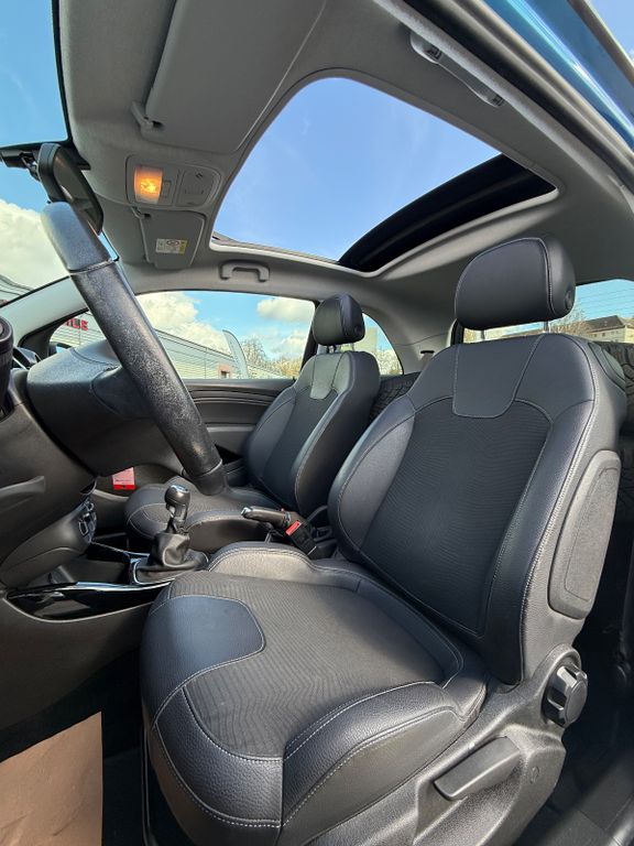 Airbag Beifahrerseite abschaltbar, Airbag Fahrer-/Beifahrerseite, Außenspiegel elektr. verstell- und heizbar und manuell anklappbar, Bordcomputer, Bremsassistent, Chrome-Paket, Einstiegsleisten (Aluminium), Elektr. Bremskraftverteilung (EBD), Elektron. Traktionskontrolle, Fahrassistenz-System: Berganfahr-Assistent (HSA, Hill Start Assist), Faltdach elektrisch, Fensterzierleisten Edelstahl / Chrom, Frontscheibe getönt, Getränkehalter hinten, Innenraumfilter: Pollenfilter, Isofix-Aufnahmen für Kindersitz an Rücksitz, Jam, Karosserie: 3-türig, Kopf-Airbag-System, Kopfstützen hinten, Kühlergrill mit Chromleiste, Lenksäule (Lenkrad) verstellbar, Lenkung mit City-Modus, Motor 1,4 Ltr. - 64 kW 16V, OnStar SOS Service, Reifen-Reparaturkit, Reifendruck-Kontrollsystem, Rücksitzlehne geteilt, Schadstoffarm nach Abgasnorm Euro 6, Seitenairbag vorn, Sitz vorn links höhenverstellbar, Sitzbezug / Polsterung: Stoff / Ledernachbildung, Sonnenblende / Sonnenblenden mit Spiegel, Steckdose (12V-Anschluß) in Mittelkonsole, Stoßfänger Wagenfarbe, Türgriffe außen Wagenfarbe mit Chromeinlage, Wärmeschutzverglasung