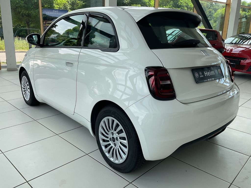 Entdecken Sie den FIAT 500e, ein kompaktes Elektrofahrzeug mit modernem Charme und umweltfreundlicher Technologie. Dieser gebrauchte Kleinwagen aus dem Jahr 2023 präsentiert sich in elegantem Weiß mit schwarzem Stoffinterieur. Mit nur einem Vorbesitzer und der Euro 6d Emissionsklasse bietet dieses Fahrzeug eine umweltbewusste Mobilität. Die Frontantrieb-Automatik liefert 118 PS Leistung und eine Reichweite von 257 km. Besonders praktisch: Die Ladezeit beträgt nur 35 Minuten an Schnellladestationen oder 255 Minuten an regulären Ladepunkten. Der FIAT 500e verfügt über einen Typ-2-Anschluss und unterstützt sogar bidirektionales Laden (V2X).- Automatische Klimaanlage für optimalen Komfort