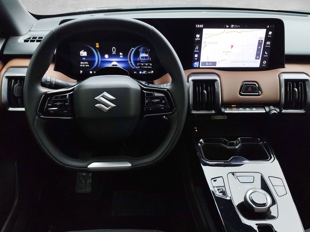 Entdecken Sie den neuen Suzuki e Vitara, ein Elektro-SUV der Zukunft, das ab 2026 verfügbar sein wird. Dieses Vorführfahrzeug bietet mit seinem 184 PS starken Elektromotor und Allradantrieb optimale Fahreigenschaften für jedes Terrain. Die 61 kWh Batterie ermöglicht eine Reichweite von 426 km, während Ladeanschlüsse vom Typ 2 und CCS Combo für flexible Lademöglichkeiten sorgen. Die grüne Metallic-Lackierung in Kombination mit der schwarzen Kunstlederausstattung verleiht dem Fahrzeug einen modernen und eleganten Look.Der e Vitara überzeugt mit umfassender Sicherheitsausstattung wie Front- und Seitenairbags, Spurhalteassistent, Kollisionsvermeidungssystem und 360-Grad-Kamera. Das Interieur bietet höchsten Komfort durch das Panorama-Glasdach, 2-Zonen-Klimaautomatik, beheizbare Sitze und kabelloses Laden für Smartphones.