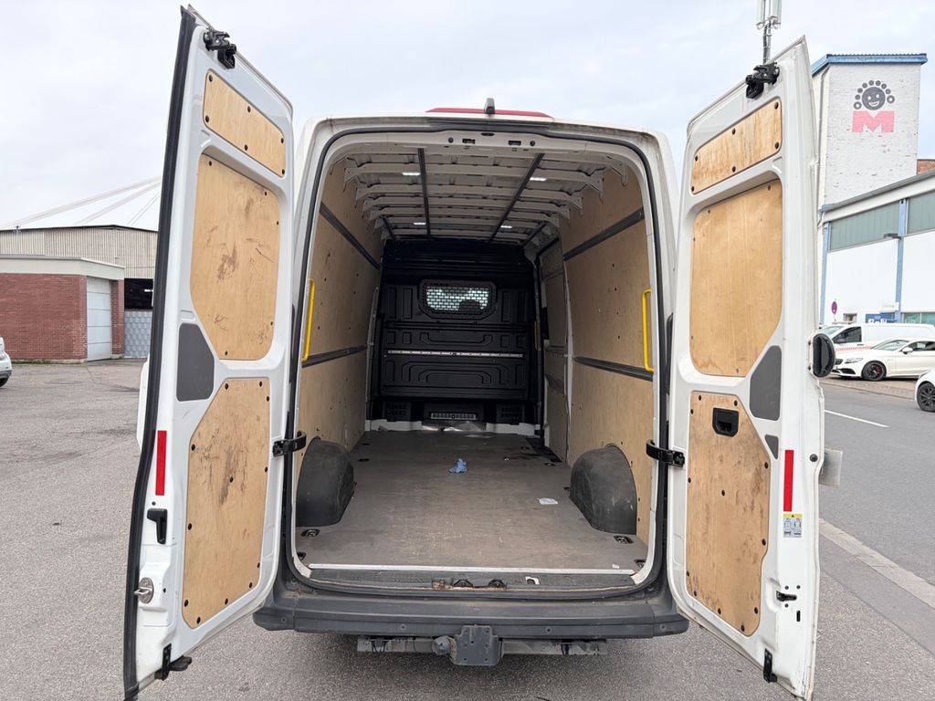 Außenspiegel konvex, links, Außenspiegel konvex, rechts, Blinkleuchten LED in Außenspiegel integriert, Bodenbelag im Fahrerhaus: Gummi, CW-Wert-Unterbodenverkleidung, Doppelscheinwerfer, Doppeltonfanfare, Einstiegsgriff an Hecksäule hinten links, Einstiegsgriff an Hecksäule hinten rechts, Fahrassistenz-System: Berganfahr-Assistent, Fahrassistenz-System: Bremsassistent (HBA), Fahrassistenz-System: Seitenwind-Assistent, Fensterheber elektrisch vorn, Frontscheibe Verbundglas, Funkschlüssel (2) klappbar, Haltegriffe A-Säulen, Heckflügeltüren ohne Verglasung, Innenleuchten im Fahrerhaus: LED, Innenleuchten im Lade-/FG-Raum: LED, Karosserie/Aufbau: Kasten Hochraum Standard, Karosserievariante: Hochdach in Wagenfarbe, Kraftstofftank: 75 Ltr., Kühlergrill mit Chromleiste oben, Lenksäule (Lenkrad) verstellbar, Leuchtweitenregelung, LKW-Zulassung, Markierungsleuchten seitlich, Motor 2,0 Ltr. - 130 kW TDI, Multifunktionsanzeige Plus, Nebelschlussleuchte, Radstand 4490 mm, Reifen-Reparaturkit, Schadstoffarm nach Abgasnorm Euro 6d-TEMP, Schiebetür Lade-/Fahrgastraum rechts, SCR-System (AdBlue-Technologie), Servolenkung elektro-mechanisch, Sitzbezug / Polsterung: Stoff, Sitze im Fahrerhaus: Fahrersitz verstellbar, Stahlfelgen 6,5x16, Start/Stop-Anlage Motor, Steckdosen (12V-Anschluß) im Fahrerhaus (2 Stück), Stoßfänger vorn in Grau, Verzurrösen Laderaum, Warnanlage für Sicherheitsgurt (Fahrerseite), Wärmeschutzverglasung, Zentralverriegelung mit Fernbedienung und Innenbetätigung, Zul. Gesamtgewicht 3,50 t