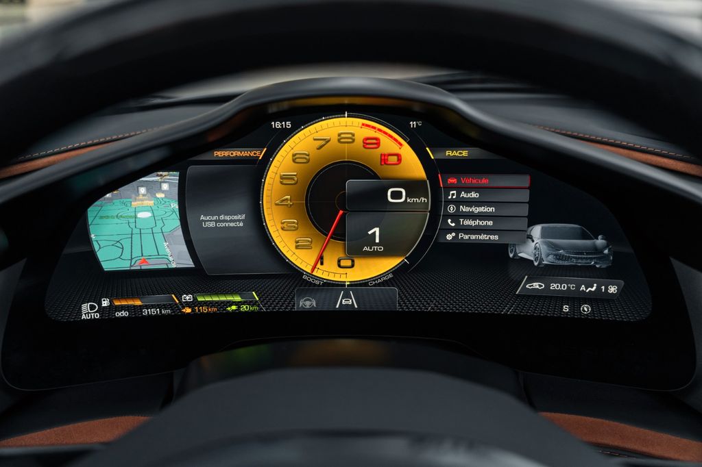 Under the hood, the Ferrari 296 GTS engine delivers a total power of 830 horsepower, combining the 663 horsepower of the 3.0L twin-turbo V6 with the complementary power of the electric motor. This allows the car to reach 205 mph, while reaching 60 mph in just 2.7 seconds. The Ferrari 296 GTS offers exceptional handling thanks to its sophisticated chassis. Maranello engineers have managed to maintain a captivating sound, which guarantees an exceptional open-top driving experience.