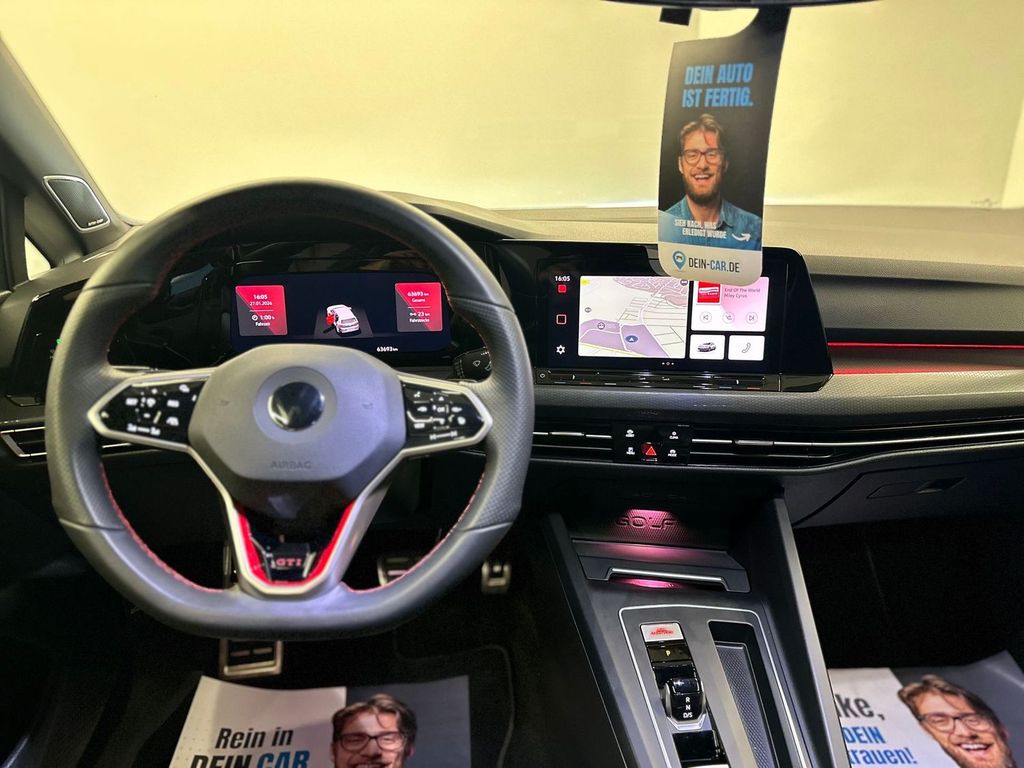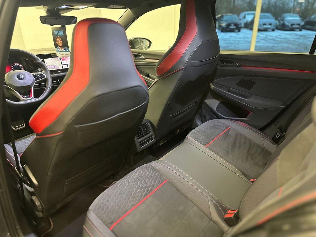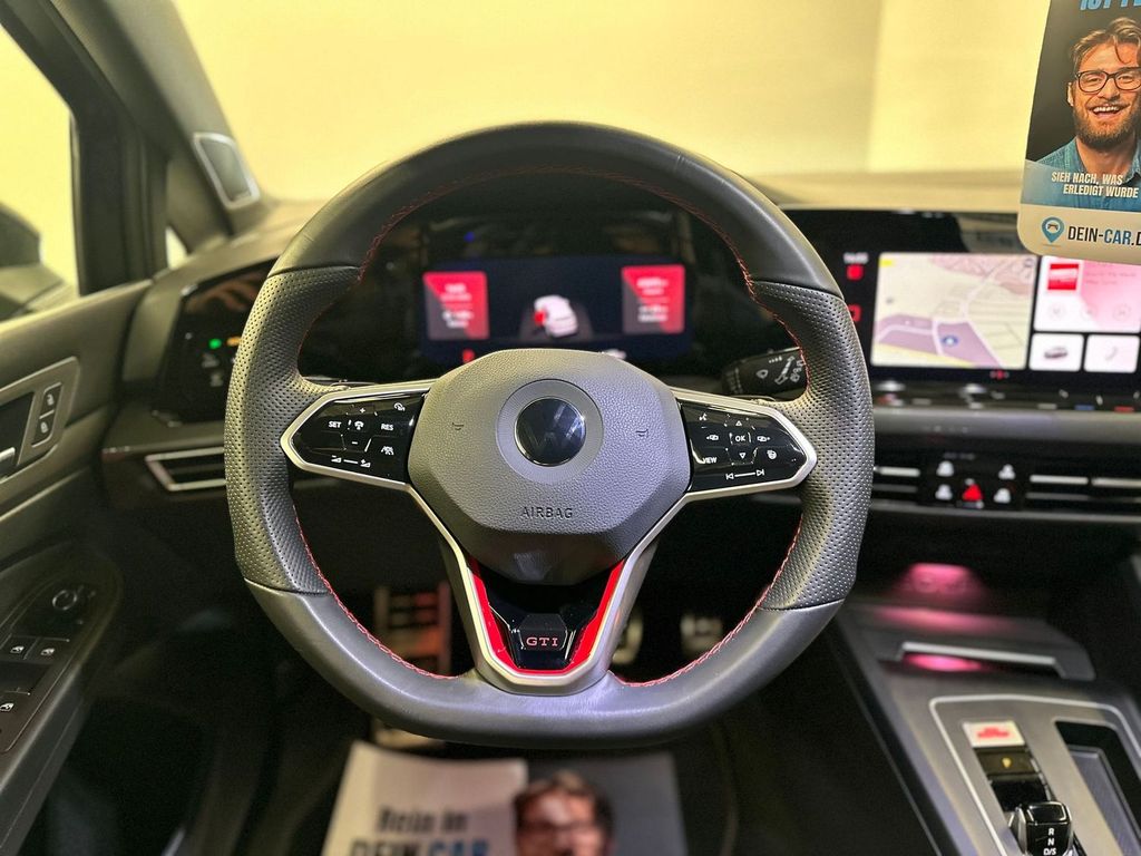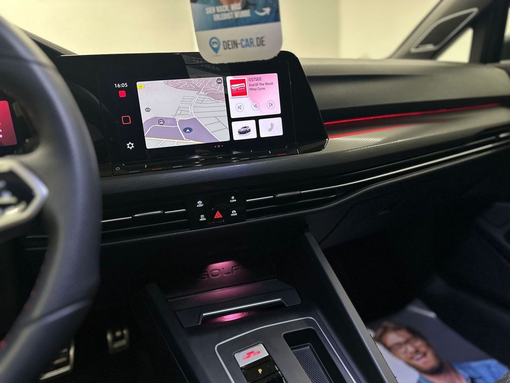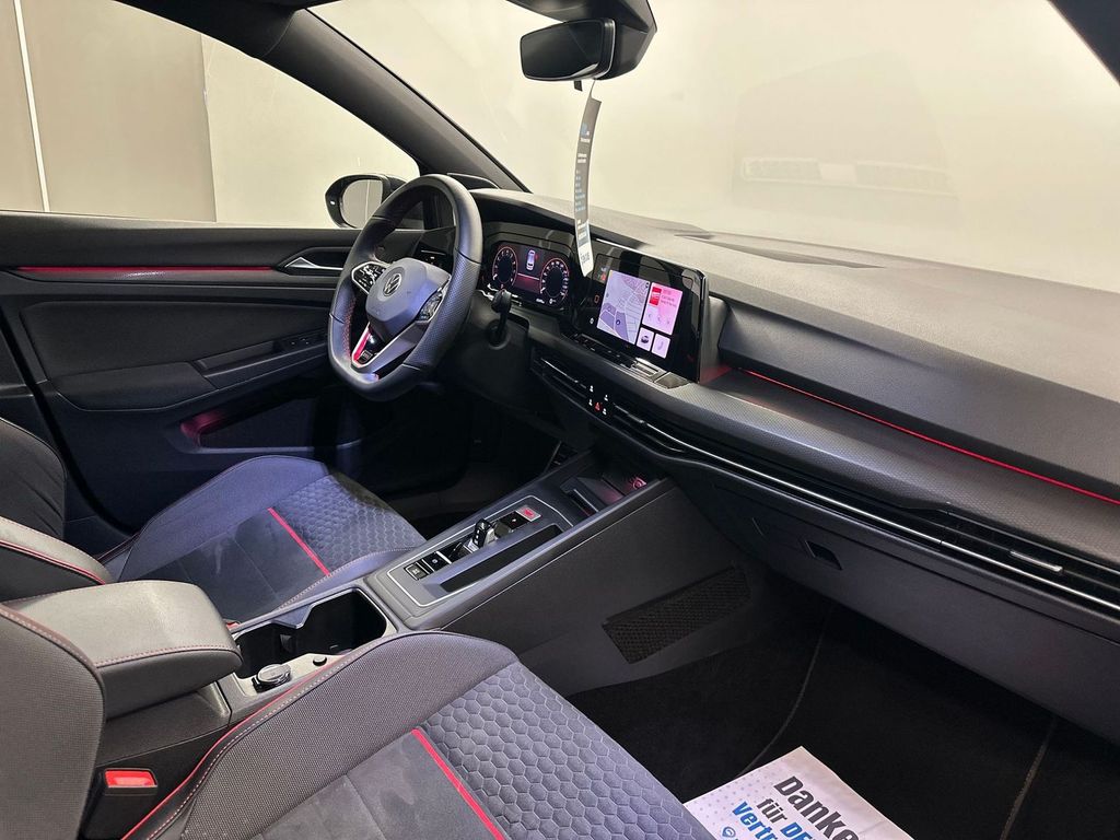3-Punkt-Sicherheitsgurt hinten mitte, Ambiente-Beleuchtung (30 Farben), Antennen-Diversity, Antriebsart: Frontantrieb, Ausstattung GTI, Außenspiegel mit Umfeldleuchte und Projektionsfunktion, Außenspiegel Wagenfarbe, Bremsassistent, Dachspoiler Motorsport, Diebstahlsicherung für Räder (Felgenschlösser), Differentialsperre (Vorderachse), Digital Cockpit (Instrumentenanzeige digital), Fahrassistenz-System: Abbiegebremsfunktion und Ausweichunterstützung, Fahrassistenz-System: Fahrprofilauswahl, Fahrassistenz-System: Umfeldbeobachtungssystem (Front assist) mit City-Notbremsfunktion, Frontscheibe Verbundglas getönt, Fußgänger-Schutzsystem (passiv), Fußmatten Textil, Fußraumbeleuchtung vorn LED (Farbe einstellbar), Geschwindigkeits-Begrenzeranlage, Getriebe 7-Gang - Doppelkupplungsgetriebe DSG, Innenausstattung: Dekoreinlagen Black Metal Chrome, Karosserie: 5-türig, Kopfstützen hinten (3-fach), LED Lichtleiste zwischen Scheinwerfer und Türgriffschalen außen beleuchtet, Lendenwirbelstützen vorn, Lenksäule (Lenkrad) mechan. verstellbar, Höhen-/Längsverstellung, Leseleuchten vorn und hinten LED, Leuchtweitenregelung automatisch, Mobile Online Dienste Vorbereitung We Connect und We Connect Plus, Motor 2,0 Ltr. - 221 kW TSI