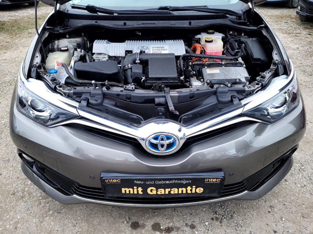 3. Bremsleuchte, 6 Lautsprecher, Ablagetasche an Vordersitzlehnen, Airbag Beifahrerseite abschaltbar, Airbag Fahrer-/Beifahrerseite, Audiosystem: Multimedia Toyota Touch 2, Außenspiegel elektr. verstell- und heizbar, Außentemperaturanzeige, Blinkleuchte in Außenspiegel integriert, Bordcomputer, Bremsassistent, Business-Paket, Comfort-Paket Plus, Elektr. Bremskraftverteilung, Elektromotor 60 kW (Hybridantrieb), Fahrassistenz-System: Bergabfahrkontrolle (HDC / DAC), Fahrassistenz-System: Berganfahrkontrolle (HAC), Fahrassistenz-System: Fernlichtassistent (Abblendautomatik Fahrlicht, AHB), Fahrassistenz-System: Pre-Collision-System (PCS), Fahrassistenz-System: Spurhalteassistent (LDA), Fahrassistenz-System: Verkehrszeichenerkennung (RSA), Fernentriegelung Tankklappe, Gepäckraumboden 2-fach verstellbar, Gurtstraffer vorn, Isofix-Aufnahmen für Kindersitz, Karosserie: 5-türig, Klimaautomatik, Knieairbag Fahrerseite, Kopf-Airbag-System, Lenksäule (Lenkrad) verstellbar, LM-Felgen, Mittelarmlehne hinten mit Getränkehalter, Modellpflege, Motor 1,8 Ltr. - 73 kW 16V Hybrid, Multi-Funktions-Display (TFT), Reifen-Reparaturkit, Reifendruck-Kontrollsystem, Rücksitz klappbar, Schadstoffarm nach Abgasnorm Euro 6, Schalt-/Wählhebelgriff Leder, Schleudertrauma-Schutzsystem, Seitenairbag, Sitz vorn links höhenverstellbar, Sitz vorn rechts höhenverstellbar, Stoßfänger Wagenfarbe, Türgriffe außen Wagenfarbe, Verglasung hinten abgedunkelt, Wärmeschutzverglasung getönt