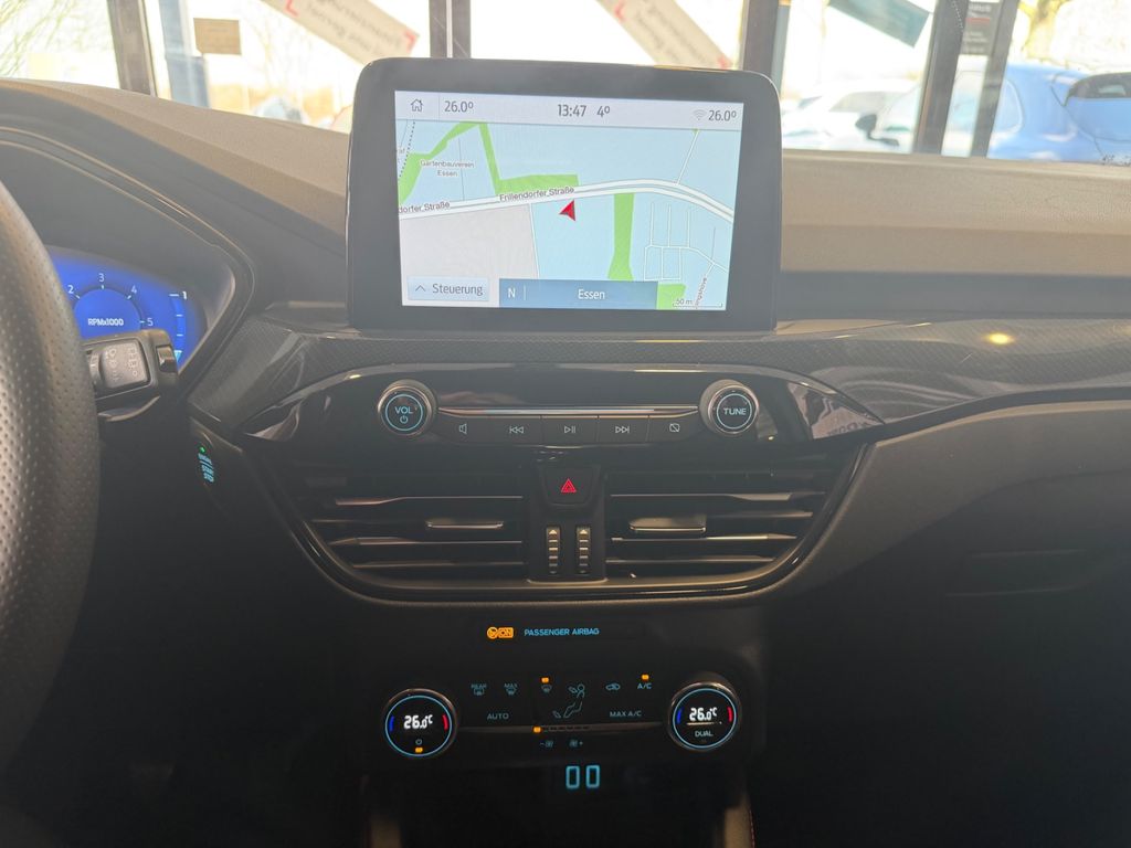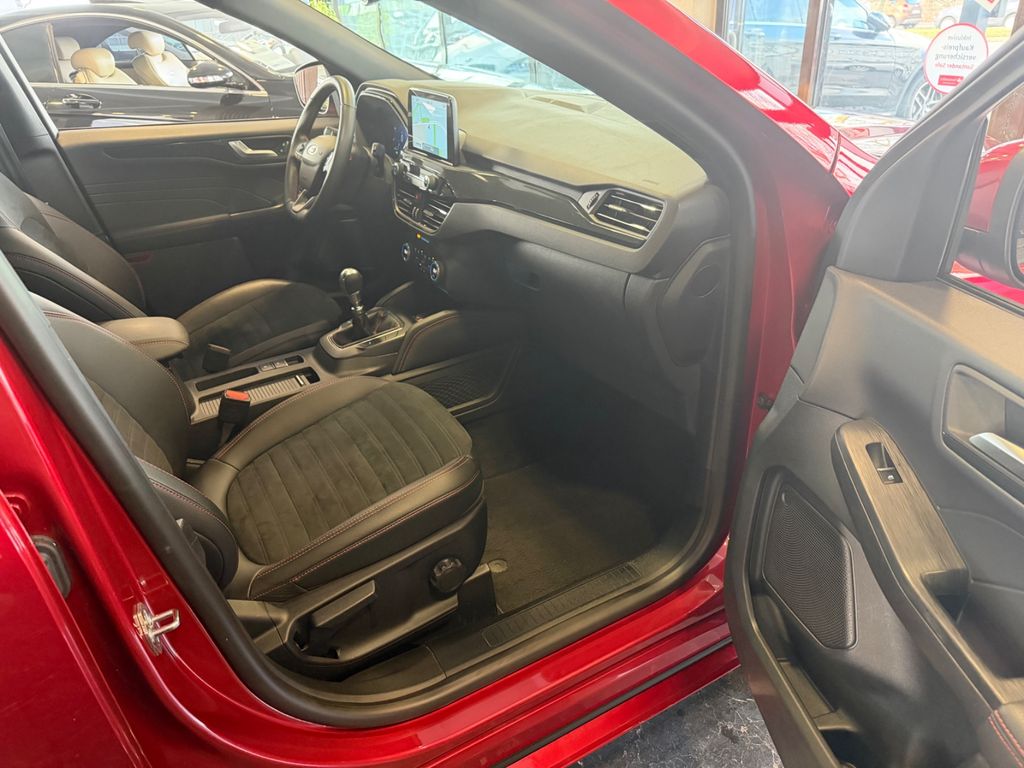 Ambiente-Beleuchtung vorn (LED), Antischlupfregelung (ASR), Audio-Navigationssystem Ford mit AppLink, Außenspiegel elektr. anklappbar, Außenspiegel elektr. verstell- und heizbar, Body-Styling-Paket, Bordcomputer, Brillenfach in Dachhimmel / Dachkonsole integriert, Dachhimmel Stoff, dunkel, Dachreling schwarz, Dachspoiler Wagenfarbe, Doppelendrohr Auspuffanlage, Eco-Anzeige für verbrauchsoptimiertes Fahren (EcoCoach), Fahrassistenz-System: Notbrems-Assistent, Fahrassistenz-System: Post-Collision-System, Fahrassistenz-System: Pre-Collision-System, Fahrassistenz-System: Spurhalteassistent, Fensterheber elektrisch vorn + hinten mit Komfortschließung, FordPass Connect inkl. eCall, Fußmatten ST-Design, Gepäckraumabdeckung / Rollo, Heckleuchten LED, Induktionsladeschale für mobile Endgeräte, Innenspiegel mit Abblendautomatik, Intelligent Protection System (IPS), Isofix-Aufnahmen für Kindersitz, Karosserie: 5-türig, Kindersicherung elektrisch, Klimaautomatik 2-Zonen, Kofferraumdeckel / Heckklappe elektr. betätigt (Öffnung, sensorgesteuert), Kombiinstrument Digitalanzeige 12,3 Zoll, Kopfstützen vorn 4-fach verstellbar, Lenkrad (Sport/Leder, ST), Lenksäule (Lenkrad) höhen-/längsverstellbar, LM-Felgen, Mild-Hybrid 110 kW (Motor 2,0 Ltr. - 110 kW Diesel), Mittelarmlehne hinten, My Key (2. Fahrzeugschlüssel programmierbar), Parkbremse elektrisch mit Auto-Hold-Funktion, Parkpilotsystem vorn und hinten, Radstand 2710 mm, Reifen-Reparaturkit, Reifendruck-Kontrollsystem, Rückfahrkamera, Rücksitzlehne geteilt, Rücksitzlehne klappbar, Schadstoffarm nach Abgasnorm Euro 6d, Schalt-/Wählhebelgriff Aluminium, Scheibenrahmen schwarz, Scheinwerfer LED, Scheinwerfer mit Ausschaltverzögerung, Scheinwerfer-Assistent mit Tag-/Nachtsensor, Sitz vorn links elektr. verstellbar (10-fach), Sitz vorn rechts verstellbar (8-fach), Sitzbezug / Polsterung: Kunstleder / Stoff Wildleder Optik, Sitzheizung vorn, Sonnenblende links mit Spiegel (beleuchtet), Sonnenblende rechts mit Spiegel (beleuchtet), Sport-Fahrwerk, Sportsitze, Start/Stop-Anlage, Verglasung hinten abgedunkelt (Privacy Glass)