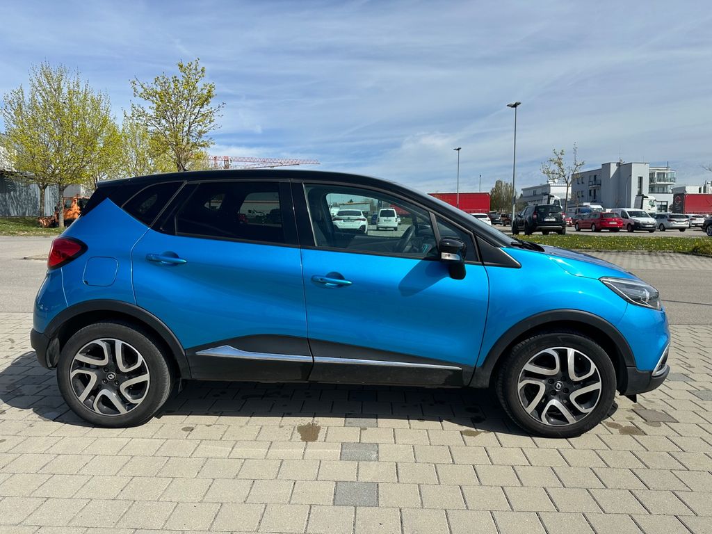 Sonderausstattung:Audio-Navigationssystem R-Link Evolution mit Touchscreen und Carminat TomTom, City-Paket, LM-Felgen 6,5x17 (Captur, schwarz), Metallic-Lackierung, Reserverad in Fahrbereifung, Sitzheizung vorn, Verglasung hinten abgedunkelt (Privacy Glass)