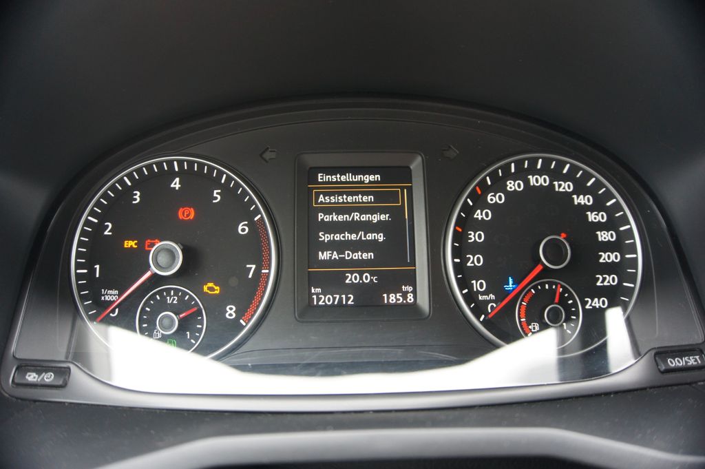 Sonderausstattung:App-Connect und 2 USB-Anschlüsse (iPhone / iPod) mit AUX-IN, Audiosystem Composition Media (Touchscreen, Radio/CD-Player, MP3, Bluetooth), Außenspiegel elektr. anklappbar, Bodenbelag vorn und im Fahrgast-/Laderaum (Gummi), Entfall 3.Sitzreihe, Fahrassistenz-System: Fernlichtregulierung (Light Assist), Fahrassistenz-System: Parklenkassistent (Park Assist), Funkschlüssel (2) klappbar, Heckflügeltüren mit Verglasung, Klimaanlage Climatronic 2-Zonen, Lendenwirbelstützen vorn, Mittelarmlehne vorn höhen-/längsverstellbar, Radioempfang digital (DAB+), Scheibenwaschdüsen heizbar, Sitze vorn höhenverstellbar mit Schubladen, Sitzheizung vorn, Sitzlehne vorn rechts umklappbar, Stahlfelgen 6x16, Stoßfänger Wagenfarbe