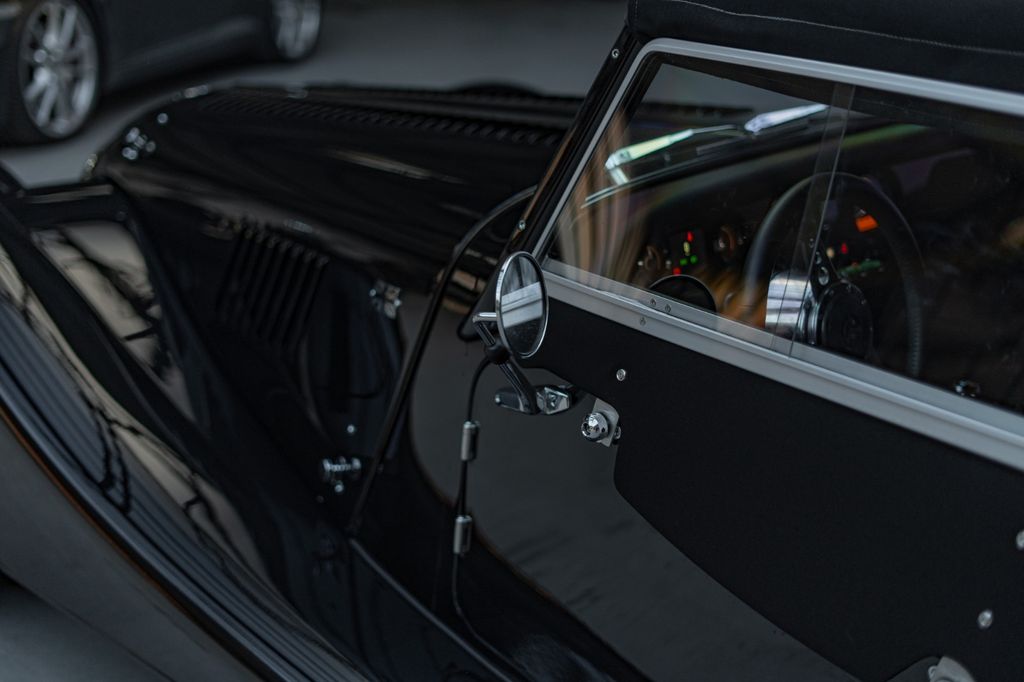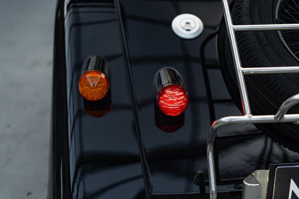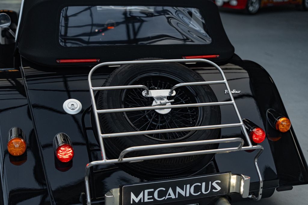 This example benefits from a particularly comprehensive and desirable optional specification, including black-painted wire wheels, a matching spare wheel, red-painted brake calipers, a black front grille, a pebble-grain leather interior with red contrast stitching, the sport exhaust system with sport pack, a specific Mota-Lita steering wheel, heated seats, a luggage rack with mounting brackets, and auxiliary driving lights, giving this Plus Four a look that is at once sporty, elegant, and authentic. The full list of options is available below.