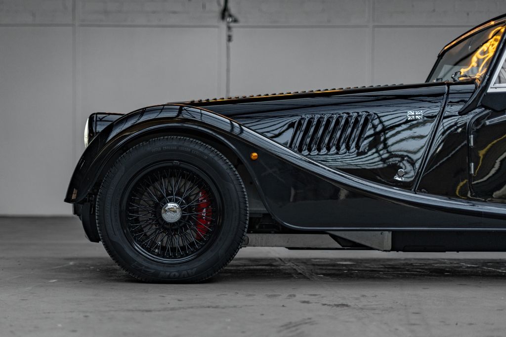 Finished in Java Black, a paint color from the Range Rover palette, combined with a black leather interior and black soft top, this Plus Four boasts a refined, elegant, and timeless specification. The black-painted wire wheels perfectly complete the ensemble and underline its sporty character.