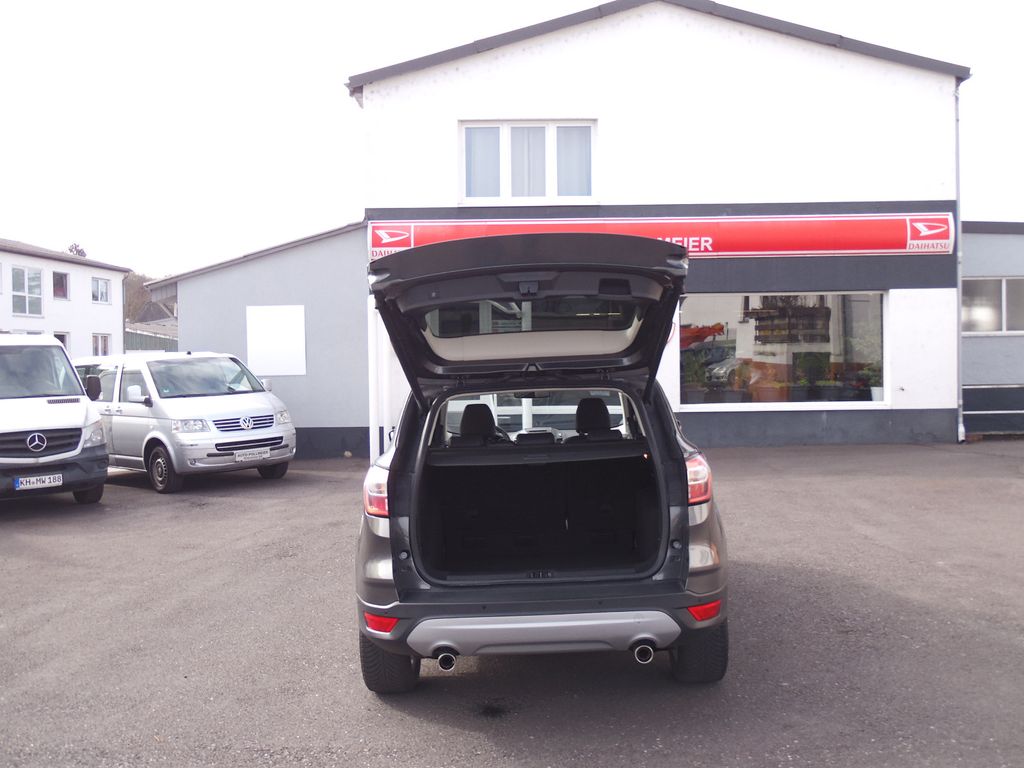 Ambiente-Beleuchtung (Multicolor-LED), Antischlupfregelung (ASR), Audiobedienung am Lenkrad, Außenspiegel elektr. verstell- und heizbar, Bordcomputer, Brillenfach in Dachhimmel / Dachkonsole integriert, Chromeinfassung Seitenscheiben, Dachspoiler Wagenfarbe, Dimmer Instrumentenbeleuchtung, Einstiegsleisten (Edelstahl), Elektr. Bremskraftverteilung (EBD), Fahrassistenz-System: Berganfahr-Assistent (Hill-Holder), Fahrassistenz-System: Notbrems-Assistent, Fensterheber elektrisch vorn + hinten mit Komfortschließung, Fußmatten Velours, Innenausstattung: Aluminium-Dekor, Innenraumfilter: Staub- und Pollenfilter, Intelligent Protection System (IPS), Isofix-Aufnahmen für Kindersitz, Karosserie: 5-türig, Klimaautomatik 2-Zonen, Kühlergrill silber, Lendenwirbelstütze Sitz vorn links, Lendenwirbelstütze Sitz vorn rechts, Lenkrad mit Schaltwippen, Lenksäule (Lenkrad) höhen-/längsverstellbar, Leuchtweitenregelung, LM-Felgen, Mittelarmlehne hinten, Modellpflege, Motor 1,5 Ltr. - 110 kW EcoBoost KAT, My Key (2. Fahrzeugschlüssel programmierbar), Parkbremse elektrisch, Radstand 2690 mm, Reifen-Reparaturkit, Reifendruck-Kontrollsystem, Rücksitzlehne geteilt/klappbar (60:40), Schadstoffarm nach Abgasnorm Euro 6, Schalt-/Wählhebelgriff Leder, Schaltpunktanzeige, Sicht-Paket, Sitz vorn links höhenverstellbar, Sitzbezug / Polsterung: Stoff/Leder, Sonnenblende links mit Spiegel (beleuchtet), Sonnenblende rechts mit Spiegel (beleuchtet), Sportsitze vorn, Start/Stop-Anlage, Steckdose (12V-Anschluß) im Koffer-/Laderaum, Türgriffe außen Wagenfarbe, Unterfahrschutz, Unterfahrschutz hinten, Verglasung getönt, Warnanlage für Sicherheitsgurte hinten, Zierleisten unterhalb Seitenscheiben Chrom-Dekor