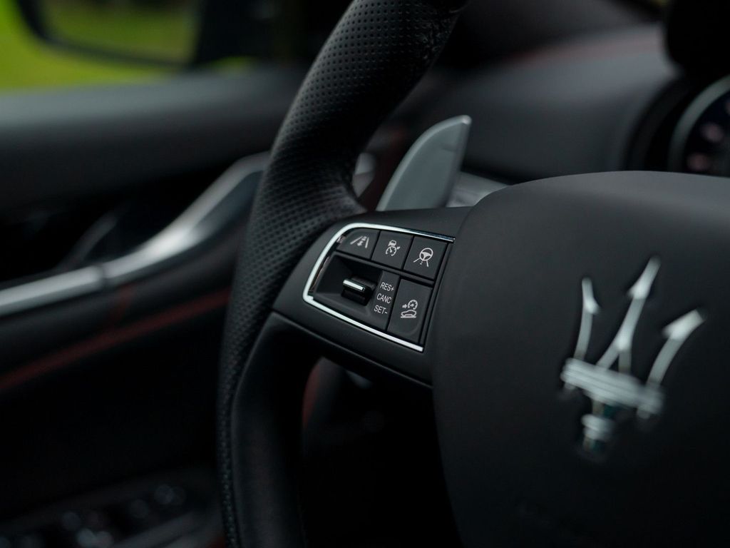 Equally captivating are its styling and equipment. The beautifully elegant Grigio Maratea bodywork sits on 21-inch wheels finished in contrasting black, with bright red brake calipers behind them to place maximum emphasis on the Maserati’s stopping power. Inside, the Rosso theme returns in the form of red contrast stitching against the extensive Nero leather upholstery.