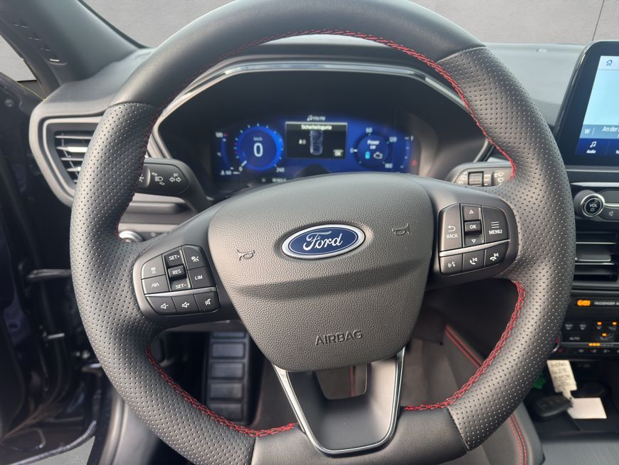 - Lenkrad: ST-Line-Design, unten abgeflacht und mit roten Ziernähten, in Sensico Kunstleder