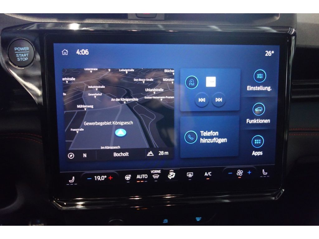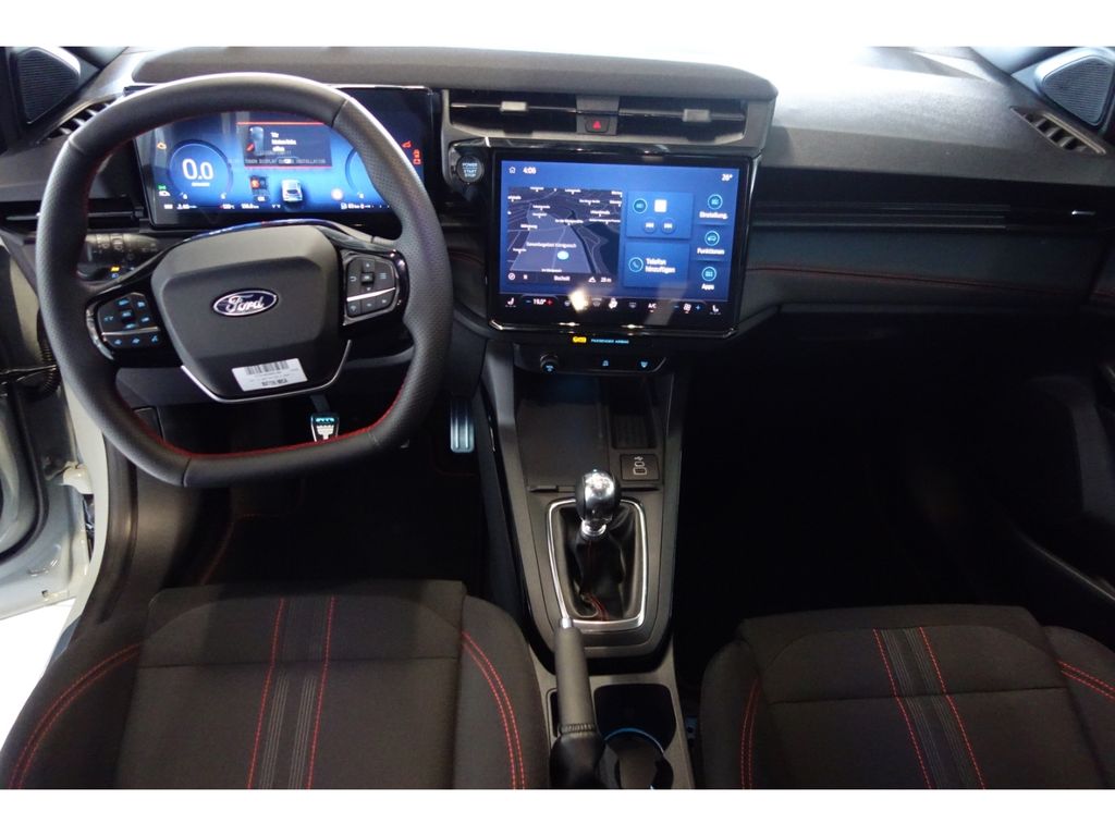 - Audio-Navigationssystem Ford Cloud-Navigationssystem: USB-Anschluss, Vorrüstung Mobiltelefon/Handy mit Bluetooth-/USB-Schnittstelle, Fahrassistenz-System: Sicherheitssystem SYNC mit automatischem Notruf, Sprachsteuerung und Bluetooth-Schnittstelle, FordPass Connect inkl. eCall, Smartphone-Integration (Apple CarPlay und Android Auto), USB-Anschlüsse (2) vorn, Kombiinstrument Digitalanzeige 12,8 Zoll