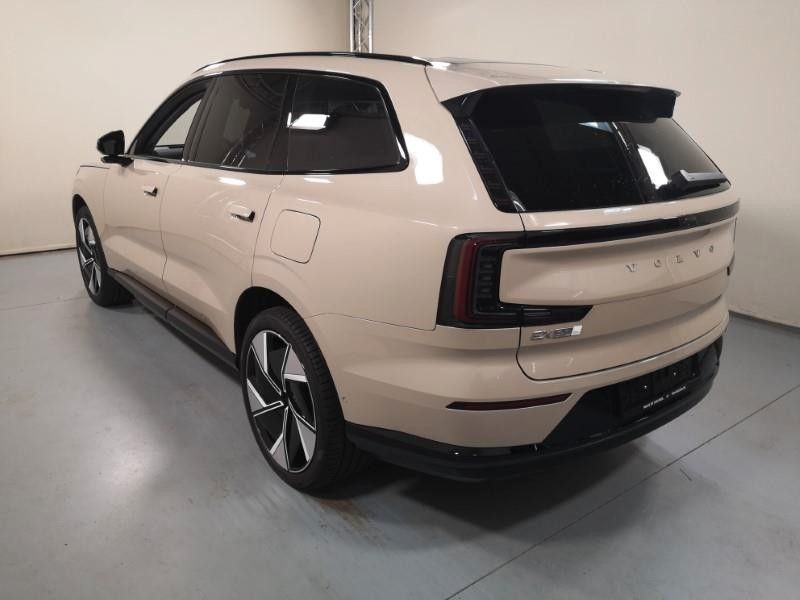 7-Sitzer, Airbag Beifahrerseite, Airbag Beifahrerseite abschaltbar, Airbag Fahrerseite, Ambiente-Beleuchtung, Anhänger-Stabilisierungs-Programm (TSA) Vorbereitung, Antriebsart: Allradantrieb, Applikationen an den Seitenfenstern schwarz, hochglänzend, Armaturenbrett in Leder-Optik mit Kontrastnaht, Außen-/Innenspiegel mit Abblendautomatik, Außenspiegel elektr. anklappbar, Außenspiegel schwarz, hochglänzend, Beinauflage manuell einstellbar, Sitze vorn, Beinauflage und Seitenwangen elektr. verstellbar, Sitze vorn, Blinkleuchten LED in Außenspiegel integriert, Convenient Entry & Start, Dachreling schwarz, hochglänzend, Digital Key, Digitale Instrumentierung 8"-Display, Elektromotor 380 kW (cont. 252 kW, Dual-Elektromotor), Elektron. Differentialsperre Corner Traction Control (CTC) mit Torque Vectoring, Erste Hilfe-Kasten / Verbandkasten, Fahrassistenz-Paket: Driver Awareness, Fahrassistenz-Paket: Safe Space Technology, Fahrassistenz-Paket: Safety Assistance, Fahrassistenz-System: Einparkhilfe 360°, Fahrassistenz-System: Intelligent Speed Assist (ISA), Fensterheber elektrisch vorn + hinten, Frontstaufach / Frunk (Kofferraum, vorn), Gepäckraum-Abtrennung (Netz), Getriebe für Elektrofahrzeug, Head-up-Display, HV-Batterie 111 kWh brutto / 107 kWh netto (Lithium-Ionen), Induktionsladeschale für Smartphone, Infotainment-System: Android (DAB+), Insassen-Schutzsystem proaktiv, Ionisator zur Luftreinigung (erweiterte Reinigung der Innenraumluft), Isofix-Aufnahmen für Kindersitz, Karosserie: 5-türig, Klimaautomatik 4-Zonen, Kopf-Airbag-System, Ladekabel (6,0 m) mit Typ 2-Stecker (Mode 3), Laderaumabdeckung, Lendenwirbelstützen vorn, elektr. verstellbar (4-Wege), Lenkrad (Sport/Kunstleder) mit Multifunktion, Lenksäule (Lenkrad) höhenverstellbar, Lenksäule (Lenkrad) längsverstellbar, Leseleuchten vorn und hinten, Mediendrehknopf in Kristallglas-Optik, Motorsound-System (Audible Vehicle Alert System, AVAS), Nebelschlussleuchte, NFC Schlüsselkarte (Keycard), One Pedal Drive (elektronisches Gaspedal), Panoramadach fest (Glas), Parkbremse elektrisch, Pixel-LED-Scheinwerfer inkl. Fernlichtassistent mit adaptiver Lichtverteilung (ALH), Radioempfang digital (DAB+), Radstand 2985 mm, Reifen-Reparaturset, Rückfahrkamera, Seitenairbag vorn, Seitenscheiben als Verbundglas, Sicherheitsgurte vorn und hinten höhenverstellbar, Sitz vorn links elektr. verstellbar, Sitz vorn rechts elektr. verstellbar, Sitzbezug / Polsterung: Ledernachbildung Nordico, Anthrazit, Sitze vorn mit Massagefunktion, Sitzheizung vorn, Smartphone Schnittstelle (Apple CarPlay), Soft-Close-Automatik für Türen, Standheizung elektrisch, Taschenhaken im Gepäckraum, Textilfussmatten Premium, Türgriffe außen lackiert, USB-Anschluss (Typ C, 2-fach), USB-Ladeanschlüsse (2-fach, Typ C) für 2.Sitzreihe, USB-Ladeanschlüsse (2-fach, Typ C) für 3.Sitzreihe, Verglasung getönt, Volvo ON CALL, Wärmepumpe zur Reichweitenoptimierung