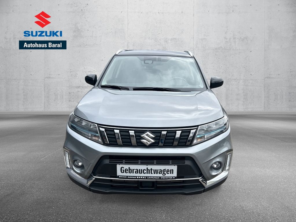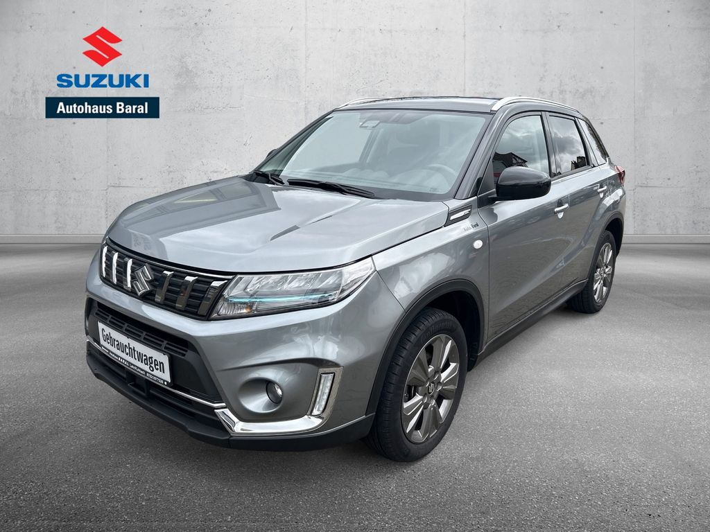 Dieser gepflegte Suzuki Vitara aus dem Jahr 2021 überzeugt durch seine vielseitige Ausstattung und moderne Hybrid-Technologie. Mit nur zwei Vorbesitzern und lückenloser Servicehistorie präsentiert sich das Fahrzeug in einem sehr guten Zustand. Der 129 PS starke Motor mit 1373 ccm Hubraum bietet eine gute Balance zwischen Leistung und Effizienz. Die graue Metallic-Lackierung harmoniert perfekt mit dem schwarzen Stoffinterieur.Der Vitara verfügt über zahlreiche Sicherheitssysteme wie Front- und Seitenairbags, ABS, ESP, Spurhalteassistent und Kollisionsvermeidungssystem. Für Komfort sorgen die Automatik-Klimaanlage, beheizbare Sitze, Lenkradfernbedienung und Regensensor. Die LED-Tagfahrlichter und LED-Scheinwerfer bieten optimale Sicht. Mit Apple CarPlay und Android Auto bleibt man stets vernetzt.