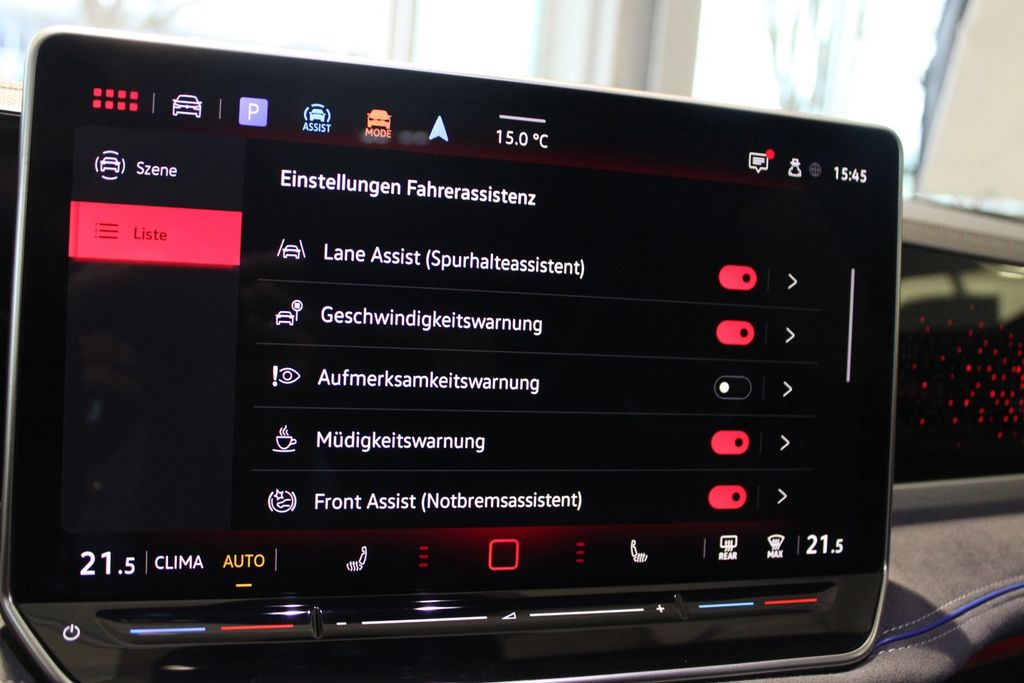 - Fahrassistenz-System: Spurwechselassistent (Side Assist) mit Auspark-Assistent und Ausstiegswarnung