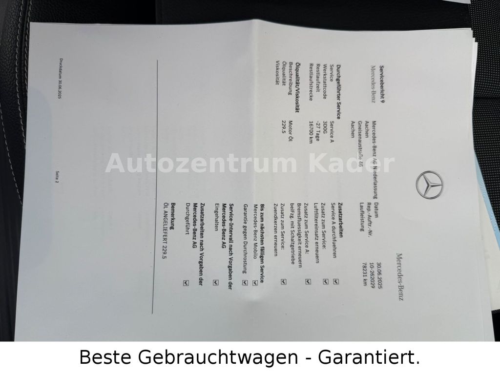 Ausstattungs-Paket: Business, Fußmatten Velours, Infotainment-System: Mercedes me connect, Infotainment-System: Remote Online, Licht- und Sicht-Paket, Mercedes-Benz Notrufsystem, Metallic-Lackierung, Reifen-Reparaturset (Tirefit), Scheibenwaschanlage beheizt, Stahlfelgen 6,5x16, TFT-Farbdisplay (8,0 Zoll)