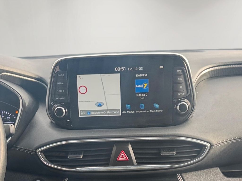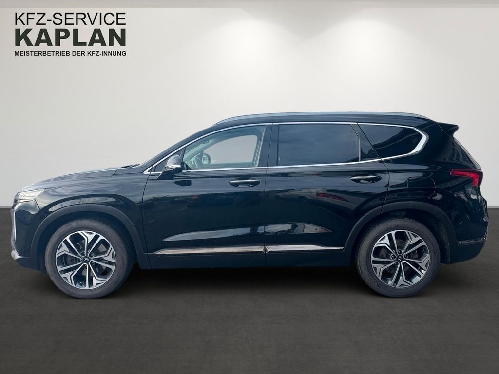 Dieser gepflegte Hyundai Santa Fe aus dem Jahr 2019 bietet Ihnen ein umfassendes Paket an Komfort und Sicherheit. Der leistungsstarke Diesel-Motor mit 200 PS und Allradantrieb sorgt für souveräne Fahrleistungen in jedem Terrain. Das Fahrzeug verfügt über ein automatisches Getriebe und erfüllt die Euro-6-Norm. Mit sieben Sitzplätzen und einer Nutzlast von 481 kg ist dieser SUV ideal für Familien. Die schwarze Metallic-Lackierung harmoniert perfekt mit dem schwarzen Lederinterieur. Besonders hervorzuheben sind das Panorama-Glasdach, die elektrische Heckklappe und die beheizbaren Sitze vorne und hinten. Der Santa Fe bietet modernste Technologie wie Apple CarPlay, Navigationssystem, Head-up-Display und adaptiven Tempomat.- 2.2 Liter Dieselmotor mit 200 PS und Allradantrieb