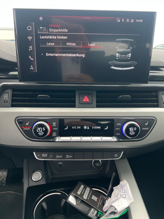 Sonderausstattung:Ablage- und Gepäckraum-Paket, Ambiente-Beleuchtung, Anhängerkupplung Vorbereitung, Audi Drive Select, Audi Smartphone Interface, Dachreling (Aluminium), Einparkhilfe hinten (APS), Fahrassistenz-System: Anfahr-Assistent (hold assist), Gepäckraumklappe elektr. betätigt (öffnen + schliessen), Glanz-Paket, Innenausstattung: Dekoreinlagen Akzentteile in der Armaturentafel in Glasoptik schwarz, Innenspiegel mit Abblendautomatik, Isofix-Aufnahmen für Kindersitz an Beifahrersitz, Kombiinstrument digital (virtual cockpit plus), Komfort-Klimaautomatik 3-Zonen, Lenkrad (Sport/Leder - 3-Speichen, unten abgeflacht) mit Multifunktion und Schaltfunktion, Metallic-Lackierung, Multi-Media-Interface MMI Navigation Plus mit MMI Touch, Sitzbezug / Polsterung: Stoff System, Sitzheizung vorn, Sportsitze vorn