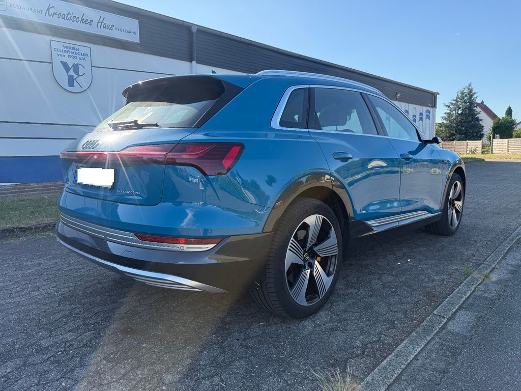 Airbag Beifahrerseite abschaltbar, Airbag Fahrer-/Beifahrerseite, Akustischer Fußgängerschutz, Außensound (e-sound), Audi connect (Internetbasierende Dienste), Audi connect (Notruf- und Assistance-System), Audi music interface, Außenspiegel Wagenfarbe, Blinkleuchten LED in Außenspiegel integriert, Diebstahlsicherung für Räder (Felgenschlösser), e-tron Aufladesystem, Einparkhilfe plus vorn, seitlich und hinten, akustisch und optisch mit Umgebungsanzeige, Elektromotor 300 kW (cont. 158 kW), Fahrassistenz-System: Bremsassistent (Audi pre sense front), Fahrassistenz-System: Insassen-Schutzsystem (Audi pre sense basic), Fahrassistenz-System: Spurverlassenswarnung, Fahrwerk (adaptive air suspension), Frontscheibe Akustikglas, Fußmatten Velours, Gepäckraum-Abtrennung (Netz), Gepäckraumabdeckung / Rollo, Gepäckraumklappe elektr. betätigt (öffnen + schliessen), Getriebe für Elektrofahrzeug, Glanz-Paket, HV-Batterie 95 kWh brutto / 89 kWh netto, Innenspiegel mit Abblendautomatik, Isofix-Aufnahmen für Kindersitz, Isofix-Aufnahmen für Kindersitz an Beifahrersitz, Karosserie: 4-türig, Kopf-Airbag-System (Sideguard), Ladedose (AC / DC), Ladekabel 2,5 m (e-tron), Ladekabel für öffentliche Ladesäulen (e-tron), Ladekabel mit Industriestecker (16 A / 400 V), Ladekabel mit Schukostecker, Ladekabel mit Typ 2-Stecker (Mode 3), Multi-Media-Interface MMI Basic Plus / MMI Radio Plus, Multi-Media-Interface MMI Navigation Plus mit MMI Touch, Nichtraucher-Paket, On-Board-Ladegerät (bis 11 kW), Progressivlenkung, Radstand 2928 mm, Reifenkontroll-Anzeige, Rücksitzlehne geteilt/klappbar (40:20:40), Seitenairbag vorn, Steckdose (12V-Anschluß) 3-fach, Stoßfänger Ausführung: advanced, Universal-Schnittstelle Bluetooth, Wärmeschutzverglasung grün getönt