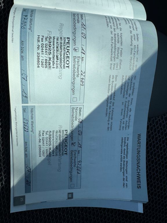Weitere Ausstattung:Airbag Beifahrerseite abschaltbar, Airbag Fahrer-/Beifahrerseite, Ambiente-Beleuchtung LED, Anzeigeinstrumente mit Hintergrund schwarz, Audiosystem mit 4 Lautsprecher + Fernbedienung am Lenkrad, Außenspiegel elektr. anklappbar, Außenspiegel elektr. verstellbar, Außenspiegel heizbar, Außenspiegel Wagenfarbe, Außentemperaturanzeige, Bordcomputer, Bremsassistent, City-Paket, Dachantenne, Dachreling, Drehzahlmesser, Elektr. Bremskraftverteilung, Fensterheber elektrisch vorn + hinten mit Komfortschaltung, Frontscheibe geräuschdämmend, Frontscheibe wärmeabweisend, Frontschürze (Edelstahl), Fzg. ohne Panoramadach (vollverglaste Dachfläche), Gepäckraumabdeckung / Rollo, Getränkehalter vorn, Handbremshebelgriff Leder, Handschuhfach beleuchtet, Handschuhfach mit Kühlfunktion, Heckleuchten LED, Heckscheibe heizbar, Heckschürze (Edelstahl), Heckspoiler inkl. Abweiser (Heckklappe), Instrumentenanzeige mit Punktematrix (groß), Isofix-Aufnahmen für Kindersitz, Karosserie: 5-türig, Kartentasche an Vordersitze, Klimaautomatik, getrennt regelbar Fahrer-/Beifahrerseite, Kopf-Airbag-System, Kopfstützen hinten (3-fach), Kopfstützen vorn verstellbar, Lenkrad mit Multifunktion, Lenksäule (Lenkrad) verstellbar, LM-Felgen, Mobile Online Dienste Mirror Screen, Modellpflege, Motor 1,6 Ltr. - 88 kW Blue-HDI FAP, Multifunktionsanzeige mit Touchscreen-Farbdisplay, Nebelscheinwerfer inkl. Kurvenlicht statisch, Radstand 2538 mm, Reifen-Reparaturkit, Reifendruck-Kontrollsystem, Rücksitz geteilt / klappbar, Schadstoffarm nach Abgasnorm Euro 6, Schaltpunktanzeige, Schutzleisten Stoßfänger Wagenfarbe, SCR-System (AdBlue-Technologie), Seitenairbag vorn, Seitenschutzleisten, Sicht-Paket, Sitz vorn links höhenverstellbar, Sitz vorn rechts höhenverstellbar, Sitzbezug / Polsterung: Stoff/Kunstleder, Sonderlackierung Hurricane Grau, Sportsitze vorn, Start/Stop-Anlage, Türgriffe außen Wagenfarbe, Türgriffe innen verchromt, Verglasung getönt, Warnanlage für Sicherheitsgurte, Zierleisten Kühlergrill (Chrom)