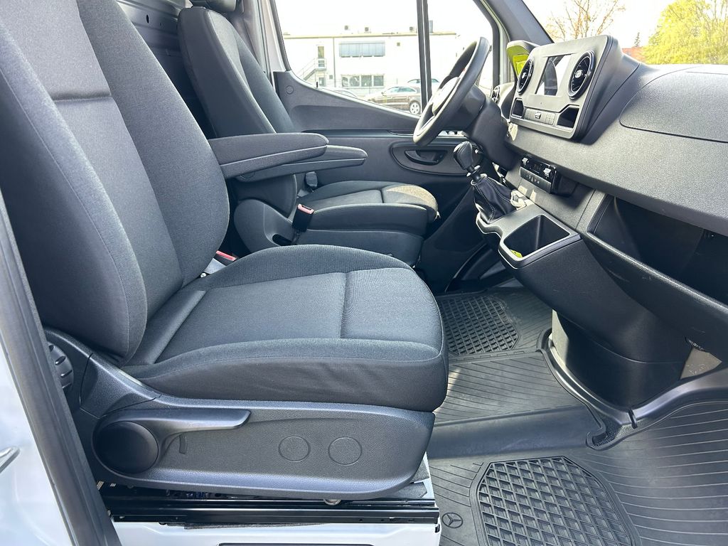 Sonderausstattung:2. Batterie (Zusatzbatterie) Innenraum, 3-Tasten-Fernbedienung für Zentralverriegelung, Ablage im Dachhimmel Fahrerhaus, Ablagen: Gepäcknetz an Hecktüren, DAB-Tuner (Radioempfang digital), Einstiegsgriff an Hecksäule hinten rechts, Fahrwerk: Stabilisierung Stufe I, Fenster für hintere Türen, Fenster im Lade-/FG-Raum: - schiebbar, vorn rechts, Holzfussboden im Laderaum, Lade-Paket Armaturentafel (USB-Anschlüsse und Steckdose 12V-Anschluß zusätzlich), Laderaumtrennwand mit Fenster, Leitungskanal an Heckportal, Leitungskanal an Seitenwand, Multimediasystem MBUX (Touchscreen 7"), Reserverad in Fahrbereifung, Reserveradhalter unter Rahmenende inkl. Wagenheber, Rückfahrkamera, Rückspiegel innen, Sitze im Fahrerhaus: Schwingsitz Komfort, Fahrerseite, Sitze im Fahrerhaus: Sitzkasten Fahrersitz, niedrig, Trennrelais bei Batterie zusätzlich, Verkleidung im Lade-/FG-Raum: Holz hoch (bis Dach), Verzurrschienen im Laderaum - Seitenwand an Brüstungsgurt, Wagenheber, Wärmeschutzverglasung (Frontscheibe mit Bandfilter oben), Zusatzheizung (Luft) mit Zeitschaltuhr