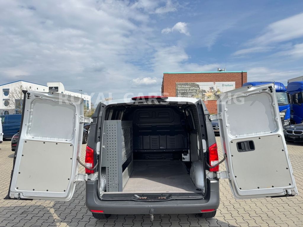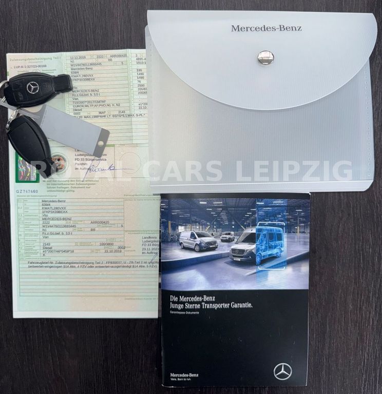 3-Tasten-Fernbedienung für Zentralverriegelung, 3. Bremsleuchte, Adaptives Bremslicht, Airbag Beifahrerseite, Airbag Fahrerseite, Anfahrhilfe (Berganfahr-Assistent), Außenspiegel asphärisch, beide, Außentemperaturanzeige, Befestigungsschienen für Dachträger, Bremsassistent, Bremssystem mit ABS+ASR, Fahrassistenz-System: Attention-Assist (Müdigkeitserkennungs-Sensor), Fahrassistenz-System: Pannenmanagement, Fahrassistenz-System: Seitenwind-Assistent, Frontscheibe mit Scheibenantenne, Generator 150 A, Getränkehalter hinten, Getränkehalter vorn, Gurtstraffer, Haltegriff Beifahrerseite, Handschuhfach abschließbar, Karosserie/Aufbau: Kasten Standard, Karosserie/Aufbau: Kompakt, Kommunikationsmodul (LTE) für digitale Dienste, Laderaumtrennwand durchgehend, Lastenverankerung / Verzurrösen, Mercedes-Benz Notrufsystem, Motor 2,1 Ltr. - 100 kW CDI KAT, Nebelschlussleuchte, Radstand 3200 mm, Schadstoffarm nach Abgasnorm Euro 6, Schiebetür Lade-/Fahrgastraum rechts, Sicherheitsgurt-System mit Warnanlage (Fahrer-/Beifahrerseite), Sitzbezug / Polsterung: Stoff, Verkleidung Fenstersäulen, Verkleidung im Lade-/FG-Raum: Hartfaser halbhoch, Verzurrschienen im Laderaum - Seitenwand an Dachrahmen, Wartungsintervall-Anzeige Assyst, Zul. Gesamtgewicht 2,80 t