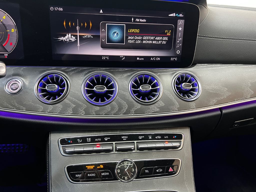 Erleben Sie deutsche Ingenieurskunst in Perfektion mit diesem Mercedes-Benz CLS 400 4Matic AMG line aus dem Jahr 2020. Der leistungsstarke Dieselmotor mit 340 PS und Allradantrieb bietet souveräne Fahrleistungen bei gleichzeitig vorbildlicher Effizienz (Euro 6). Das Fahrzeug präsentiert sich in elegantem Grau-Metallic mit schwarzer Lederausstattung und verfügt über ein umfassendes Sicherheitspaket inklusive 360-Grad-Kamera, Spurhalteassistent und Totwinkelwarner. Die Ausstattung lässt keine Wünsche offen: vom adaptiven Fahrwerk über das digitale Cockpit bis hin zum Panorama-Schiebedach. Besonders komfortabel gestalten sich längere Fahrten dank der belüfteten Sportsitze mit Memoryfunktion, der Vier-Zonen-Klimaautomatik und dem Premium-Soundsystem. Das Fahrzeug wurde in Deutschland ausgeliefert, hat nur zwei Vorbesitzer und verfügt über ein lückenloses Scheckheft.- 340 PS starker Sechszylinder-Dieselmotor mit Automatikgetriebe