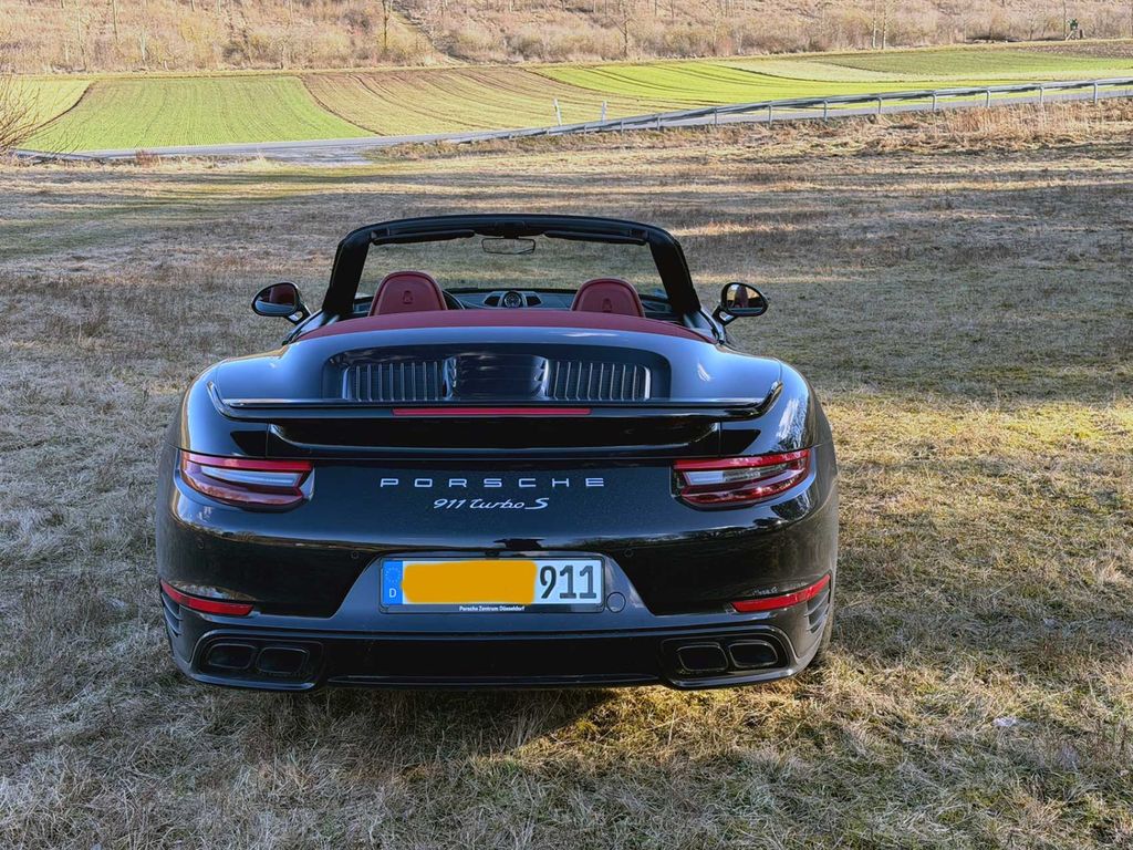 Ein Porsche 911 Turbo S Cabriolet (991.2) in Tiefschwarz Metallic mit Vollausstattung, PCCB, Burmester,