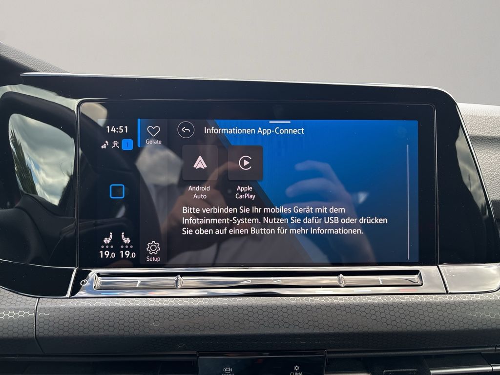 Telefonschnittstelle mit induktiver Ladefunktion; Audiosystem Ready 2 Discover (inkl. Streaming & Internet, Touchscreen, Bluetooth); 2 USB-C-Schnittstellen vorn, 2 USB-C-Ladebuchsen an der Mittelkonsole hinten; Ladeleistung bis zu 45 W; Digitaler Radioempfang DAB+; App-Connect inkl. App-Connect Wireless (Apple CarPlay, Android Auto); Audiosystem: Vorbereitung für spätere Freischaltung Navigationsfunktion Discover Media; Vorbereitet für "We Connect" und "We Connect Plus" oder "VW Connect" und "VW Connect Plus"; 6+1 Lautsprecher