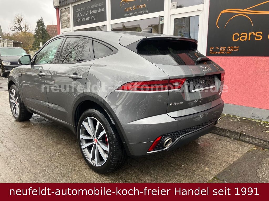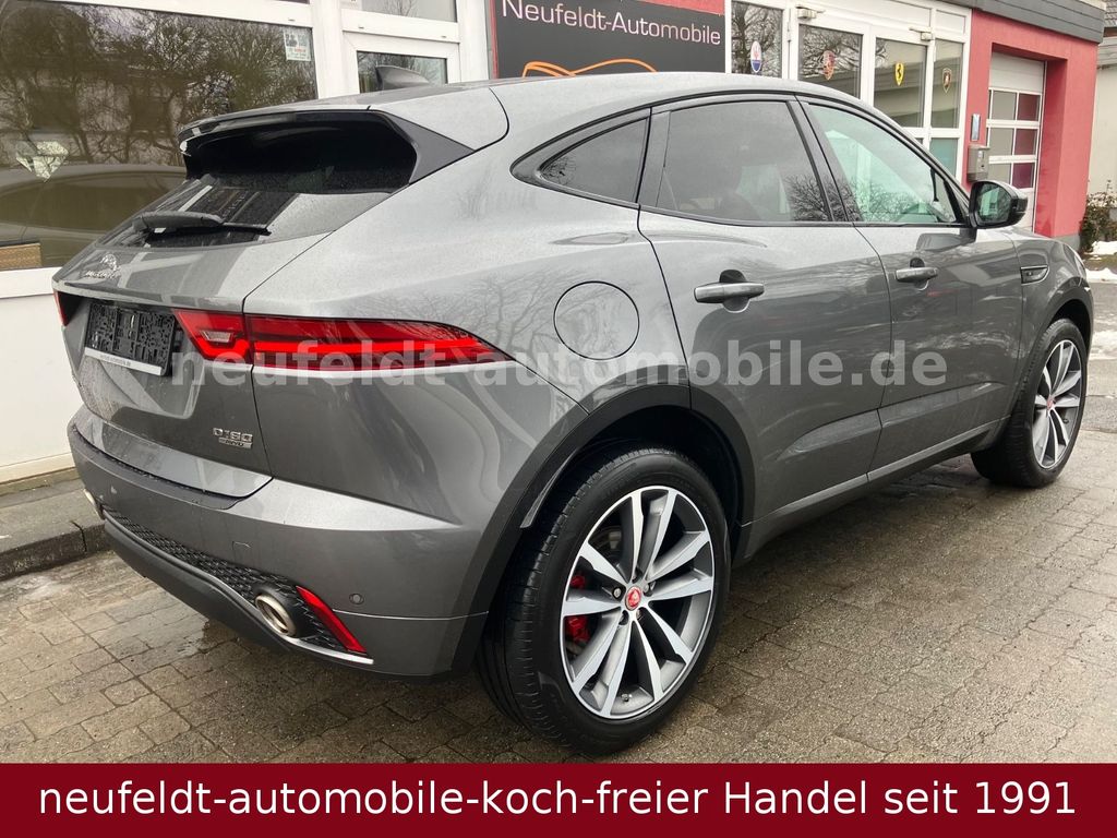 Airbag Fahrer-/Beifahrerseite, Ambiente Interieurbeleuchtung, Antriebsart:Allradantrieb, Außenspiegel elektr. verstell-, heiz- und anklappbar, mit Abblendautomatik und Umfeldleuchte, Bluetooth-Schnittstelle, Dachhimmel Morzine in Ebony, Design- und Ausstattungslinie R-Dynamic, Edelstahlpedale, Einparkhilfe vorn und hinten, Einschaltautomatik für Fahrlicht / Lichtsensor, Einstiegsblenden (Edelstahl) mit Schriftzug, Elektr. Bremskraftverteilung (EBD), Elektron. Traktionskontrolle, Fahrassistenz-System: Aufmerksamkeits-Assistent, Fahrassistenz-System: Autonomer Notbrems-Assistent (AEB), Fahrassistenz-System: Berganfahrhilfe (Hill-Holder), Fahrassistenz-System: Spurhalteassistent, Fußgänger-Schutzsystem: Airbag für Fußgänger, Gepäckraumabdeckung / Rollo, Gepäckraumbeleuchtung, Getränkehalter vorn mit Abdeckung, Heckleuchten LED, Heckscheibe heizbar, Heckspoiler, InControl Touch Pro Infotainment-System (10 Zoll Farbdisplay), InControl-Connect-Paket Pro, Innenspiegel mit Abblendautomatik, Isofix-Aufnahmen für Kindersitz im Fond, JaguarVoice Sprachsteuerung, Karosserie: 5-türig, Kindersicherung elektrisch, Klimaautomatik 2-Zonen, Kopf-Airbag-System (Windowbag), Lenkrad mit Schaltwippen/-tasten (Mattchrom), Leseleuchten im Fond, Lichtassistent (Coming Home, Leaving Home), Lufteinlassblende Chrom, Make-up-Spiegel im Fond beleuchtet, Mittelarmlehne vorn mit Ablagefach, Motor 2,0 Ltr. - 110 kW Diesel KAT, Navigationssystem Pro, Nebelschlussleuchte integriert, Park-Distance-Control (PDC) vorn und hinten, Parkbremse elektronisch (EPB), Radioempfang digital (DAB+), Radstand 2681 mm, Reifen-Reparaturset, Reifendruck-Kontrollsystem, Rückfahrkamera, Rücksitzlehne geteilt/klappbar, Schadstoffarm nach Abgasnorm Euro 6d-TEMP, Scheibenrahmen schwarz, Scheinwerfer LED mit LED-Signatur, Seitenairbag vorn, Smartphone-Paket, Sportsitze Leder, Stop-Start-Anlage, Taschenhaken im Gepäckraum, Türentriegelung automatisch (bei Unfall), Verzurrösen Koffer-/Laderaum, Warnanlage für Sicherheitsgurte