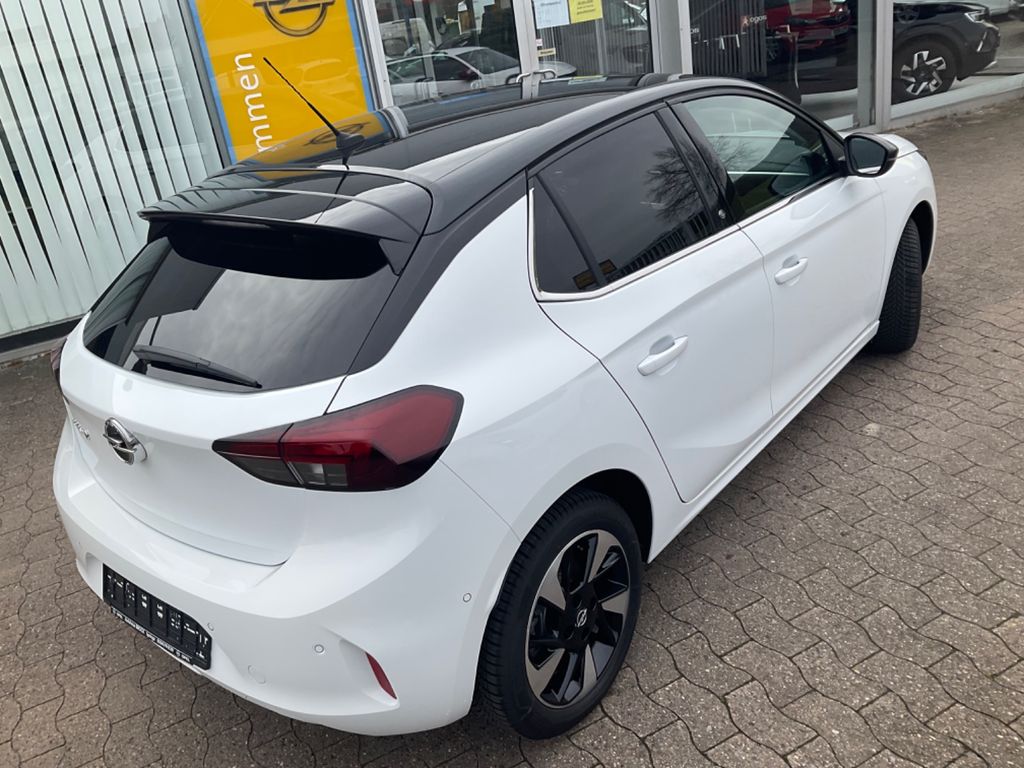 6 Lautsprecher, Airbag Fahrer-/Beifahrerseite, Akustischer Fußgängerschutz (Außensound), Audiosystem Multimedia, B-Säulen schwarz Hochglanz (außen), Bordcomputer, Bremsassistent, Elektrische Schnellheizung (Quickheat), Elektrofahrzeug, Elektromotor 100 kW (cont. 57 kW), Elektron. Stabilitäts-Programm Plus (ESP), Fahrassistenz-System: Berganfahr-Assistent (HSA, Hill Start Assist), Fahrassistenz-System: Müdigkeitserkennungs-Sensor, Fahrassistenz-System: Spurhalteassistent, Fahrassistenz-System: Verkehrszeichenerkennung, Fensterheber elektrisch vorn + hinten, Fensterheber vorn elektr. mit Einklemmschutz, Fernbedienung zur Aktivierung der Heizung/Klimaanlage, Feststellbremse elektrisch, Gepäckraumbeleuchtung (LED), Heckscheibenwischer, Innenausstattung: Dekorleisten Silber / Schwarz (Grau), Isofix-Aufnahmen für Kindersitz an Beifahrersitz, Isofix-Aufnahmen für Kindersitz an Rücksitz, Karosserie: 5-türig, Klimaautomatik, Kombiinstrument digital, Kopf-Airbag-System, Ladekabel mit Schukostecker (Mode 2), Ladevorrichtung On-Board-Lader (7 kW), Lenkrad (Sport/Leder - 3-Speichen, unten abgeflacht) mit Multifunktion, Lenksäule (Lenkrad) verstellbar, Leseleuchten vorn (2), LM-Felgen, Mittelarmlehne vorn mit Ablagefach, Motor Starterknopf, Nebelschlussleuchte, Opel Connect, Reifen-Reparaturkit, Rücksitzbank geteilt/klappbar (60:40), Scheinwerfer LED, Seitenairbag vorn, Sicht-Paket, Sitzbezug / Polsterung: Stoff / Ledernachbildung, Stoßfänger Wagenfarbe, Türgriffe außen Wagenfarbe, Türgriffe innen verchromt, Warnanlage für Sicherheitsgurt, Beifahrerseite, Warnanlage für Sicherheitsgurt, Fahrerseite, Warnanlage für Sicherheitsgurte hinten, Wärmepumpe zur Reichweitenoptimierung