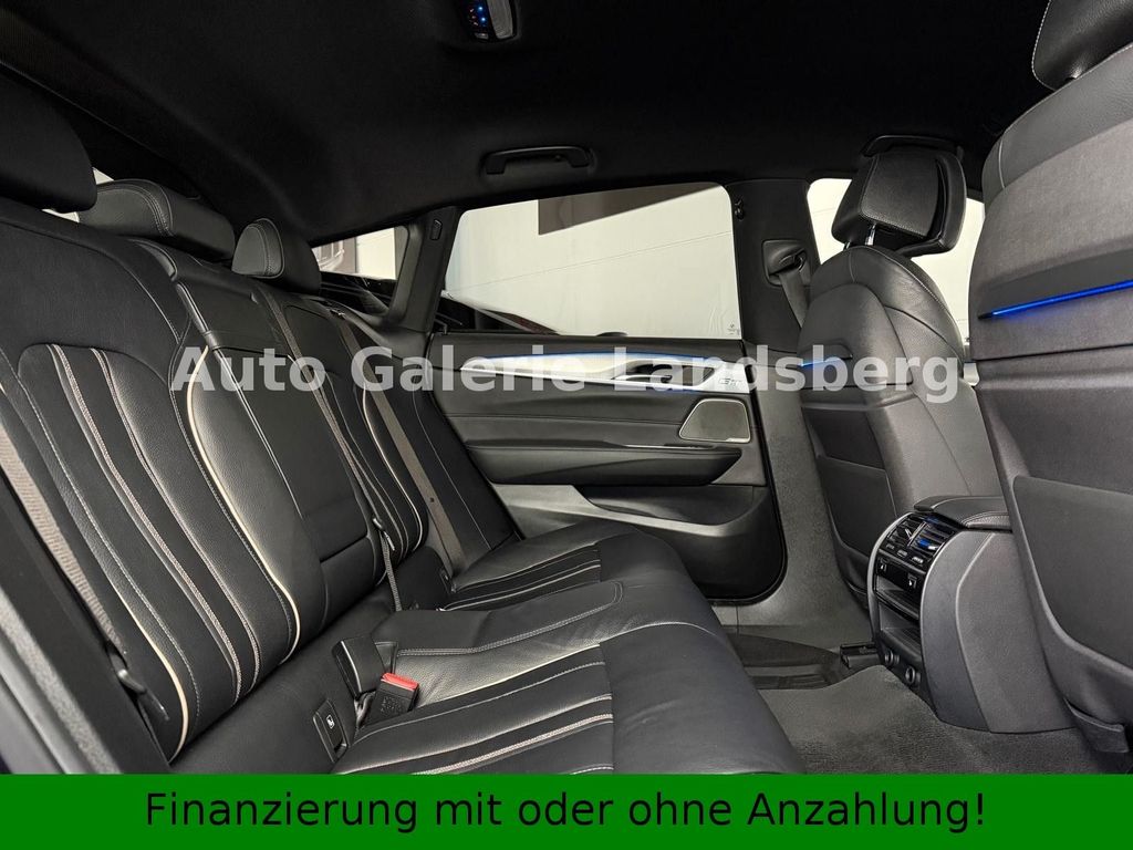BMW 640i xDrive Gran Turismo in der Sonderausführung „M Sport“, 3,0-Liter-Benziner mit spritzigen 340 PS, Allradantrieb, 8-Gang-Sportautomatik, sportliche 19-Zoll-Alufelgen (LM-Rad M Doppelspeiche Bicolor), M Sportbremse, LED-Scheinwerfer inkl. Fernlichtassistent, Shadow Line, Außenfarbe: Carbonschwarz Metallic, Parksensoren + Rückfahrkamera, Soft-Close-Automatik, abgedunkelte Verglasung, Ambientebeleuchtung im Innenraum, Driving Assistant (Spurhalteassistent, Auffahrwarnung, Totwinkelassistent), Navigationssystem Professional, DAB, Bluetooth, Harman/Kardon Surround-Sound-System, multifunktionales Instrumentendisplay (Digitaltacho), M Lederlenkrad inkl. Multifunktionstasten, Komfortzugang (Keyless Go), Komfortsitze mit Memory (Leder Dakota Schwarz mit Exklusivnaht), Head-up-Display, Telefonie mit Wireless Charging, Dachhimmel anthrazit, Sitzheizung vorne + hinten.