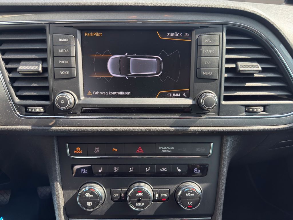 3. Bremsleuchte, 8 Lautsprecher, Ablage-Paket, Ablagetasche an Vordersitzlehnen, Airbag Beifahrerseite abschaltbar, Airbag Fahrer-/Beifahrerseite, Antriebs-Schlupfregelung (ASR), Außenspiegel elektr. verstell-, heiz- und anklappbar, beide, Außenspiegel und Türgriffe außen in Wagenfarbe, Außentemperaturanzeige, Blinkleuchten LED in Außenspiegel integriert, Bordcomputer, Bremsassistent, Dachreling silber, Elektron. Differentialsperre (EDS), Fahrassistenz-System: Berganfahr-Assistent (Hill-Holder), Fahrassistenz-System: Berganfahr-Assistent und Elektron. Differentialsperre, Fahrassistenz-System: Fahrprofilauswahl (SEAT Drive Profile), Fensterheber elektrisch hinten, Gepäckraumabdeckung / Rollo, Handschuhfach beleuchtet, Heckleuchten LED, Innenausstattung: Chrom-Applikationen, Isofix-Aufnahmen für Kindersitz, Karosserie: 5-türig, Klimaanlage Climatronic 2-Zonen, Knieairbag Fahrerseite, Kofferraumbeleuchtung, Kopf-Airbag-System, Kopfstützen hinten (3-fach), Kopfstützen vorn verstellbar, Laderaumboden variabel und herausnehmbar, Lendenwirbelstütze Sitz vorn links, verstellbar, Lendenwirbelstütze Sitz vorn rechts, verstellbar, Lenkrad (Sport/Leder), Mittelarmlehne hinten, Motor 1,4 Ltr. - 110 kW 16V TSI ACT, Reifen-Reparaturset, Reifenkontroll-Anzeige, Rücksitzlehne geteilt/klappbar (1/3-2/3), Rücksitzlehnen umklappbar mit Fernentriegelung im Kofferraum, Schadstoffarm nach Abgasnorm Euro 6, Schalt-/Wählhebelgriff Leder, Seitenairbag, Seitenscheiben hinten und Heckscheibe abgedunkelt, Sitz vorn links höhenverstellbar, Sitz vorn rechts höhenverstellbar, Sonnenblende links mit Spiegel (beleuchtet), Sonnenblende rechts mit Spiegel (beleuchtet), Sport-Fahrwerk FR / Cupra, Sportsitze vorn, Sprachsteuerungs-System, Start/Stop-Anlage, Stau-/Ablagefach unter Sitze vorn, Steckdose (12V-Anschluß) im Koffer-/Laderaum, Steckdose (12V-Anschluß) vorn, Stoßfänger lackiert, Wärmeschutzverglasung