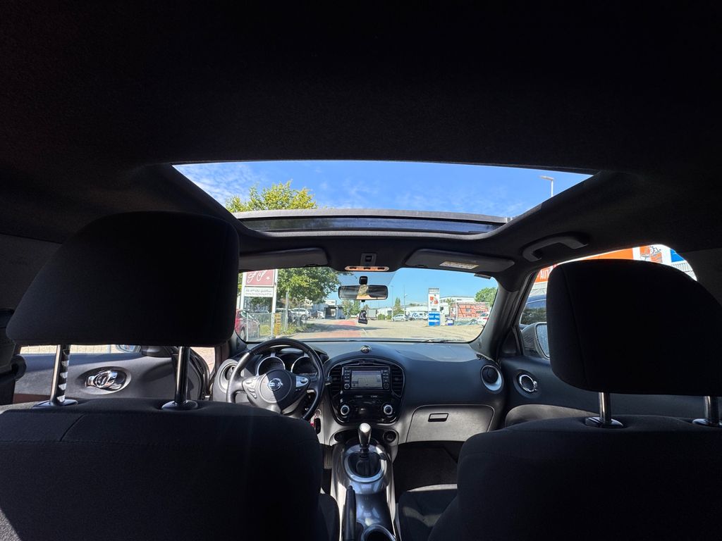 Dieser gepflegte Nissan Juke aus dem Jahr 2017 überzeugt durch seine vielseitige Ausstattung und moderne Technik. Der SUV mit Frontantrieb verfügt über einen sparsamen 1,2-Liter-Benzinmotor mit 116 PS und erfüllt die Euro-6-Norm. Mit nur zwei Vorbesitzern und lückenloser Servicehistorie präsentiert sich das Fahrzeug in einem sehr guten Zustand.Die graue Metallic-Lackierung harmoniert perfekt mit dem grauen Stoffinterieur. Besonders komfortabel gestaltet sich das Fahrerlebnis durch die Automatik-Klimaanlage, Sitzarmlehne und elektrische Außenspiegel. Das Panorama-Glasdach sorgt für ein lichtdurchflutetes Ambiente. Zur Sicherheitsausstattung zählen Front- und Seitenairbags, ESP, ABS, Berganfahrhilfe und Traktionskontrolle.