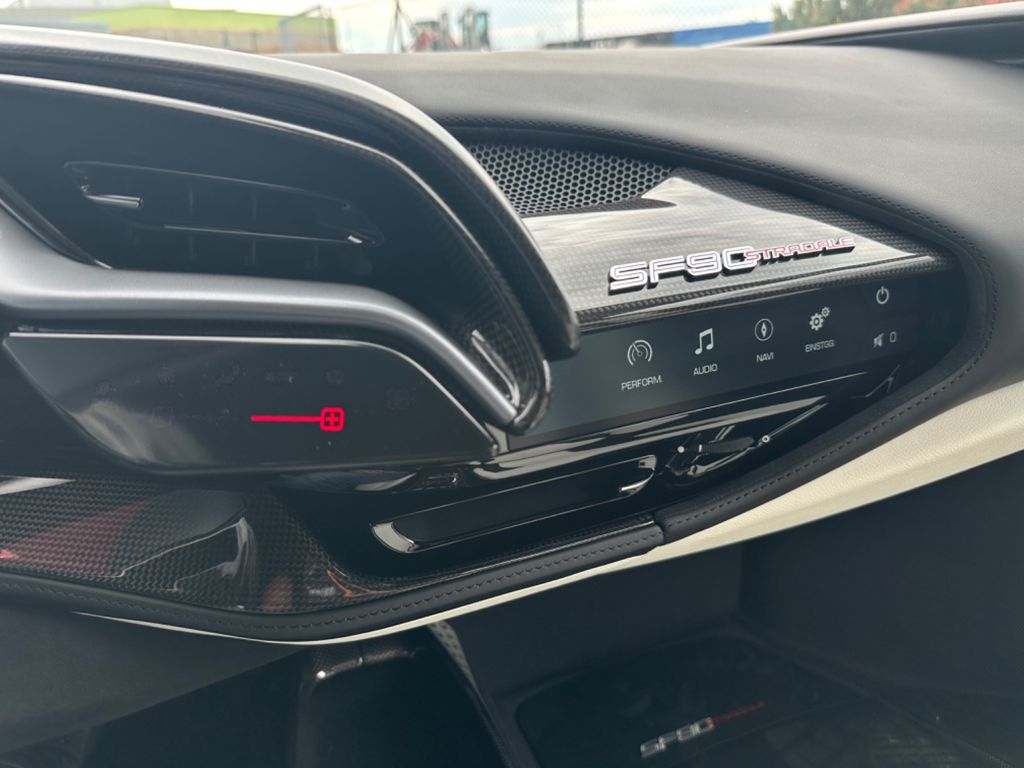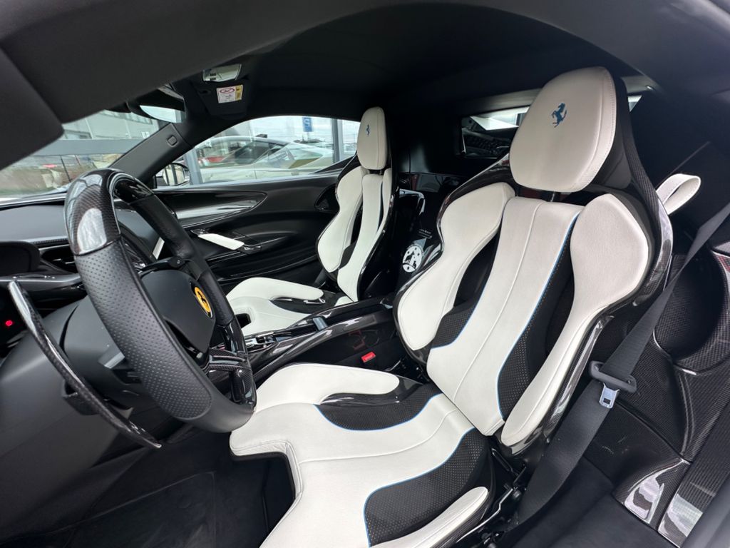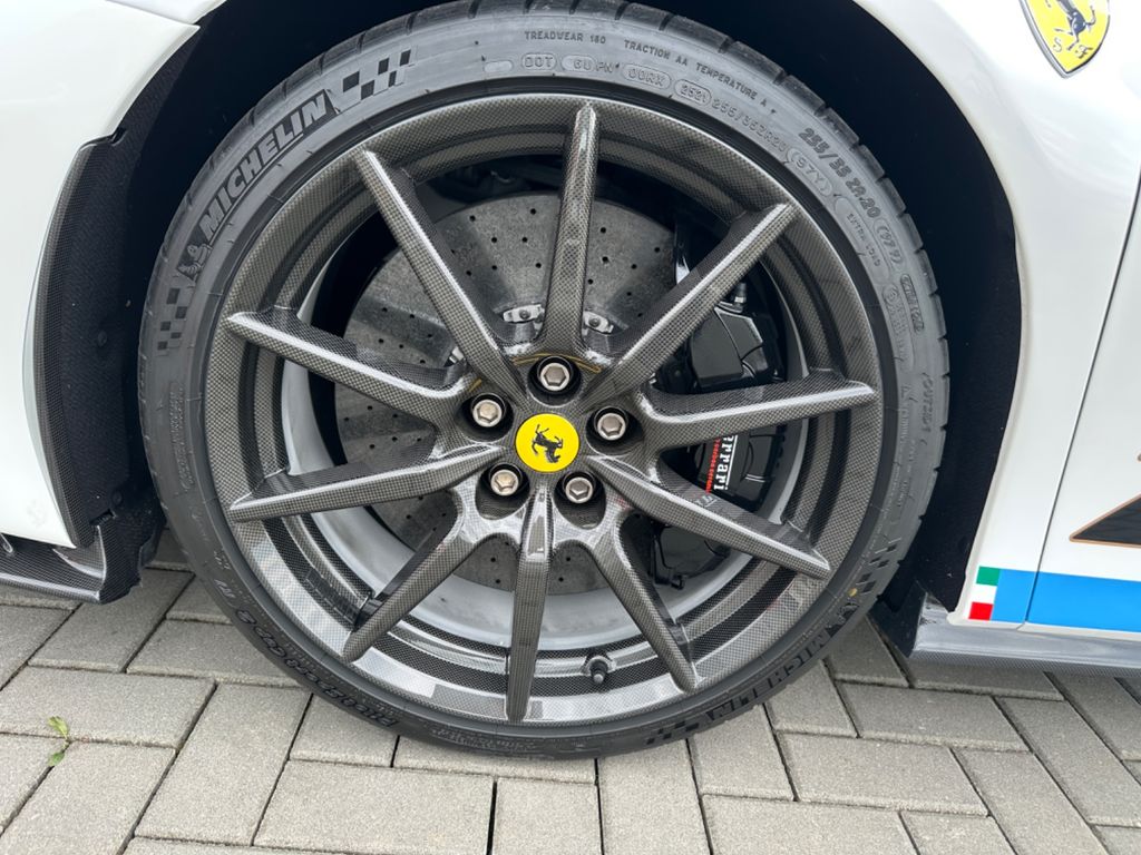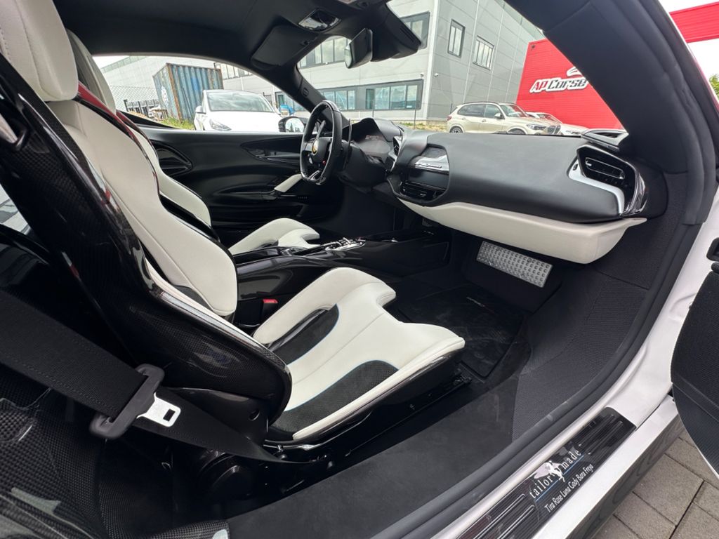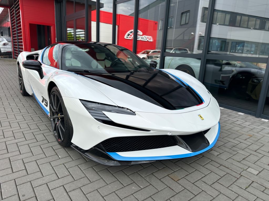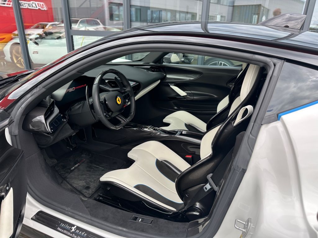 Full carbon taylor made Ferrari SF90 Stradale with assetto fiorano paket. Individual paint Bianco Bianco with livery in baby blue , tricolore livery , and combination black on roof and bonnet.Flavio Manzonis signature on engine bay with ferrari racing team.