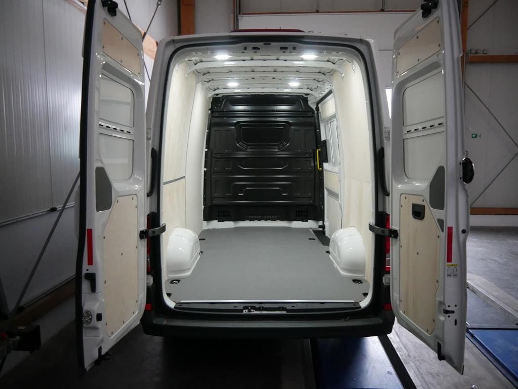 Schiebetür Lade-/Fahrgastraum rechts; Karosserie/Aufbau: Kasten Hochraum; Heckflügeltüren ohne Verglasung; Heckflügeltüren ohne Fensterausschnitte; Bremsassistent (HBA); Bodenbelag im Fahrerhaus: Gummi; Seitenwind-Assistent; Radstand 3640 mm; Nachrüstung Ladeboden 9mm Sperrholz Dunkelbraun