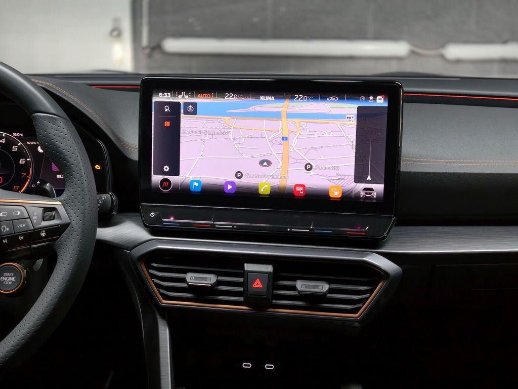 Airbag Beifahrerseite abschaltbar, Airbag Fahrer-/Beifahrerseite, Ambiente-Beleuchtung Smart Ambient Light / Plus, Antriebs-Schlupfregelung (ASR), Audio-Navigationssystem mit Touchscreen Farbbildschirm, Blinkleuchten LED in Außenspiegel integriert, Bluetooth-Schnittstelle mit Freisprecheinrichtung integriert, Dachhimmel schwarz, Dachreling schwarz, hochglänzend, Doppeltonhorn, Einstiegsleisten (Aluminium) vorn, beleuchtet, Elektron. Differentialsperre (XDS), Fahrassistenz-Paket L, Fahrassistenz-Paket: Stau- und Notfallassistent, Fahrassistenz-Paket: Travel Assist, Fahrassistenz-System: Adaptive Fahrwerksregelung (DCC), Fahrassistenz-System: Fahrprofilauswahl (CUPRA Drive Profile), Fahrassistenz-System: Parklenkassistent mit Einparkhilfe vorn und hinten, Fensterheber elektrisch vorn + hinten mit Komfortschaltung, Fensterzierleisten schwarz hochglänzend, Gepäckraumabdeckung / Rollo, Heckleuchten Voll-LED mit dynamischem Lichtband (Infinite Light), Isofix-Aufnahmen für Kindersitz an Rücksitz, Karosserie: 5-türig, Klimaanlage Climatronic 3-Zonen, Kombiinstrument digital (virtual cockpit), Kopf-Airbag-System, Laderaumboden variabel und herausnehmbar, Licht- und Sicht-Paket, LM-Felgen, Mittelarmlehne hinten, Mittelkonsole vorn mit Mittelarmlehne, Becherhalter, Ablagebox und Luftausströmer hinten, Motor 2,0 Ltr. - 228 kW 16V TSI, Notrufsystem, Otto-Partikelfilter (OPF), Parkbremse elektrisch, Radioempfang digital (DAB+), Radstand 2680 mm, Reserverad als Notrad, Rückfahrkamera, Rücksitzlehne geteilt/klappbar (1/3-2/3), Rücksitzlehnen umklappbar mit Fernentriegelung im Kofferraum, Schadstoffarm nach Abgasnorm Euro 6d, Seitenairbag, Seitenairbag vorn mitte (Central Airbag), Seitenscheiben hinten und Heckscheibe abgedunkelt, Sitz vorn links höhenverstellbar, Sitz vorn rechts höhenverstellbar, Sonnenblende links mit Spiegel (beleuchtet), Sonnenblende rechts mit Spiegel (beleuchtet), Sport-Schalensitze vorn mit integrierten Kopfstützen, Start/Stop-Anlage, Steckdose (12V-Anschluß) vorn, Steckdose 230V im Gepäckraum, USB-Ladeanschlüsse (2-fach, Typ C) für 2.Sitzreihe, USB-Schnittstelle vorn (2-fach, Typ C), Verzurrösen Koffer-/Laderaum, Warnanlage für Sicherheitsgurt-System, Wärmeschutzverglasung